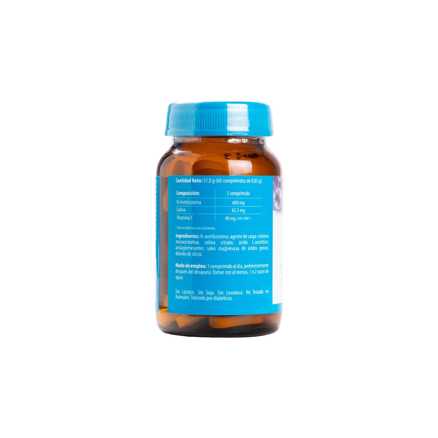 Por 1 comprimido: N-Acetilcisteína (600 mg), Colina (82,5 mg), Vitamina C (40 mg).