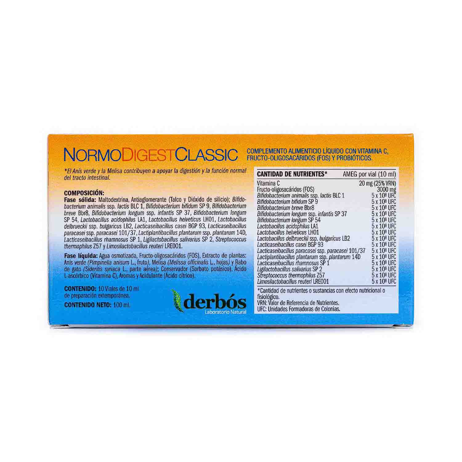 Complemento alimenticio en viales con Probióticos e Inulina de Topinambur para normalizar el proceso de digestión y evitar problemas como gases, diarrea, estreñimiento,etc.