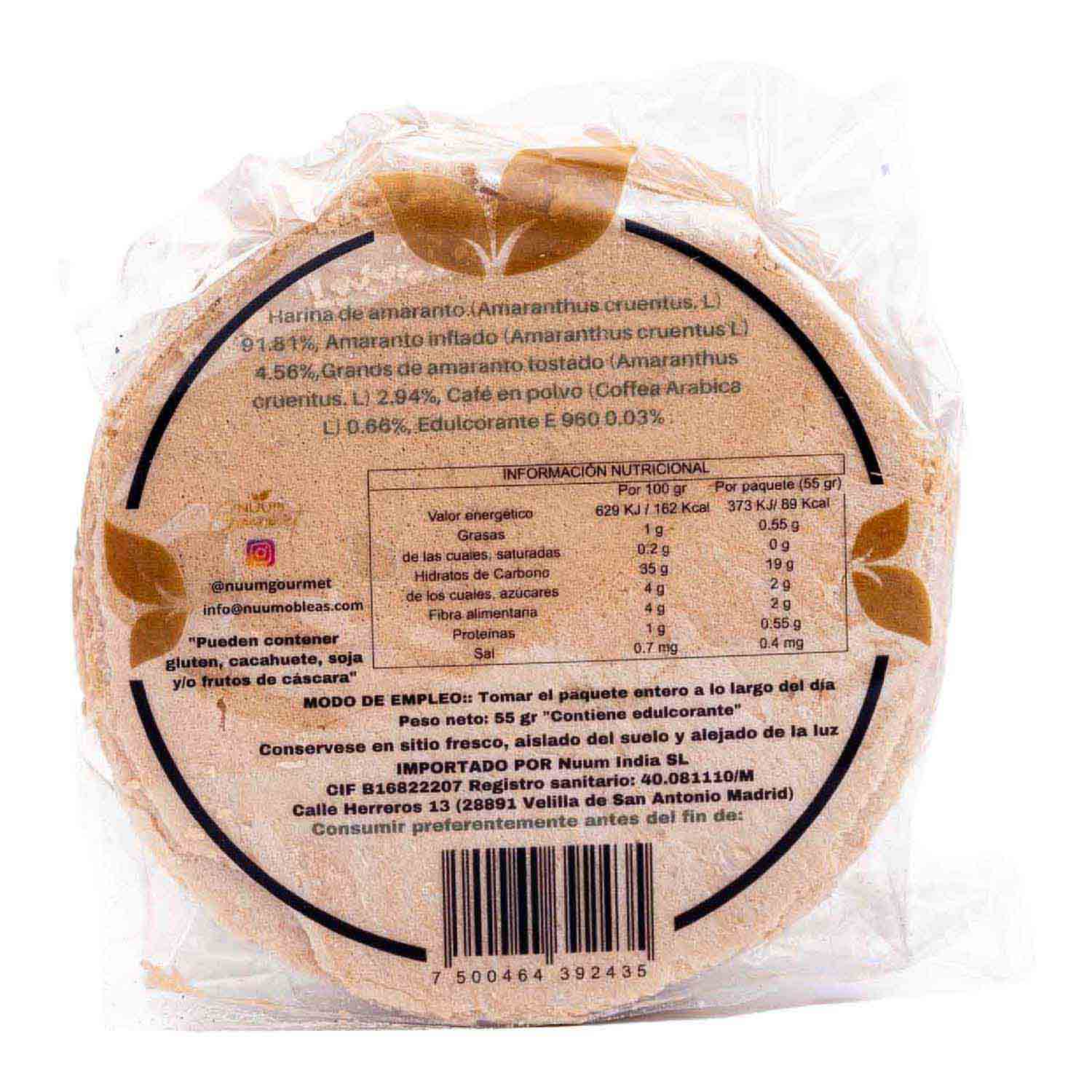 Obleas de Amaranto sabor Capuchino 60g Nuum