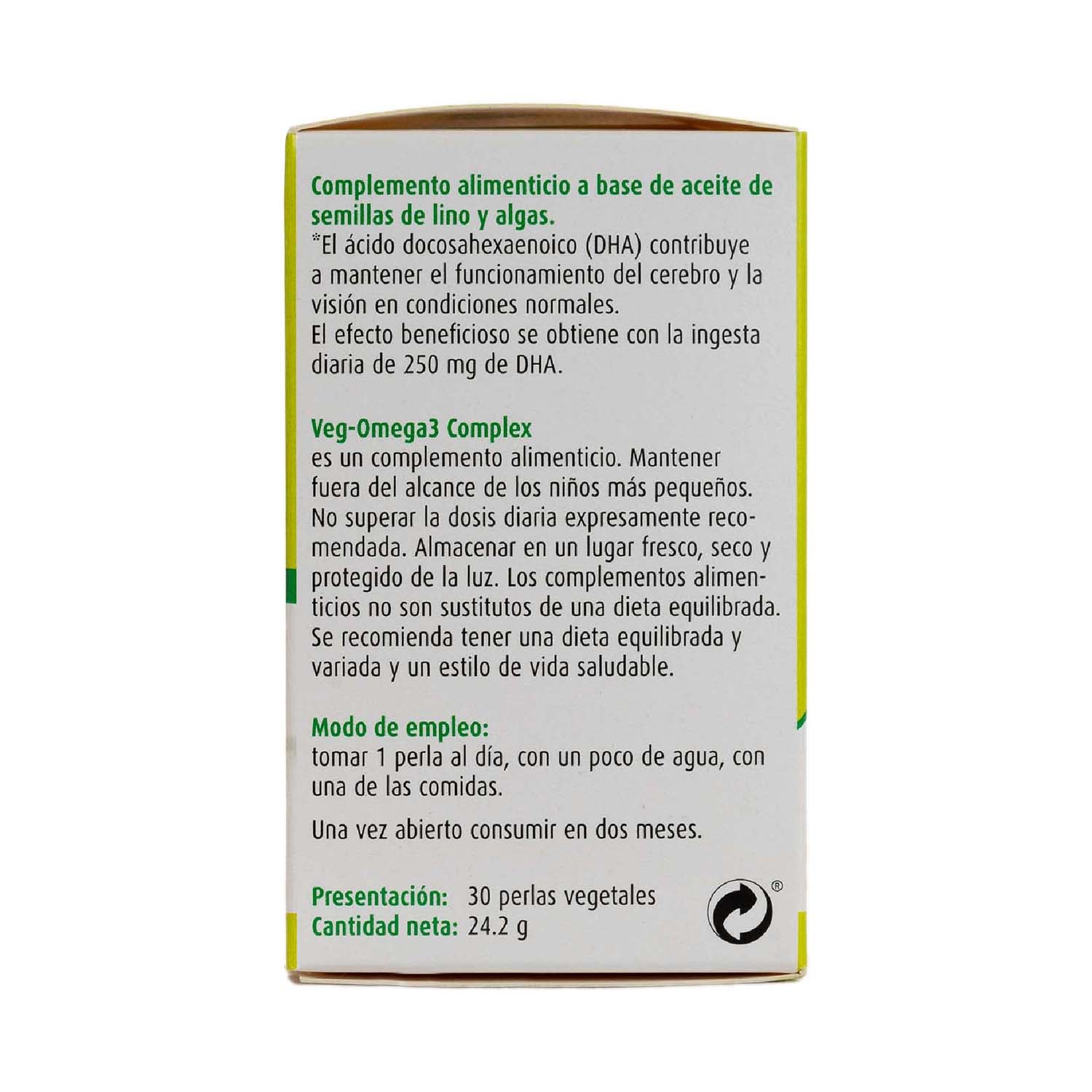 Veg-Omega 3 Complex es un producto con certificado ecológico 100% vegetal, destinado a mantener una buena salud y favorecer en condiciones normales las diferentes funciones del organismo. Gracias a la acción de los ácidos grasos DHA y ALA extraídos del aceite de lino y de aceite de microalga Schizochytrium, se promueve la produción de EPA. El DHA, ácido docosahexaenoico, contribuye al mantenimiento de una función cerebral y visión normal.