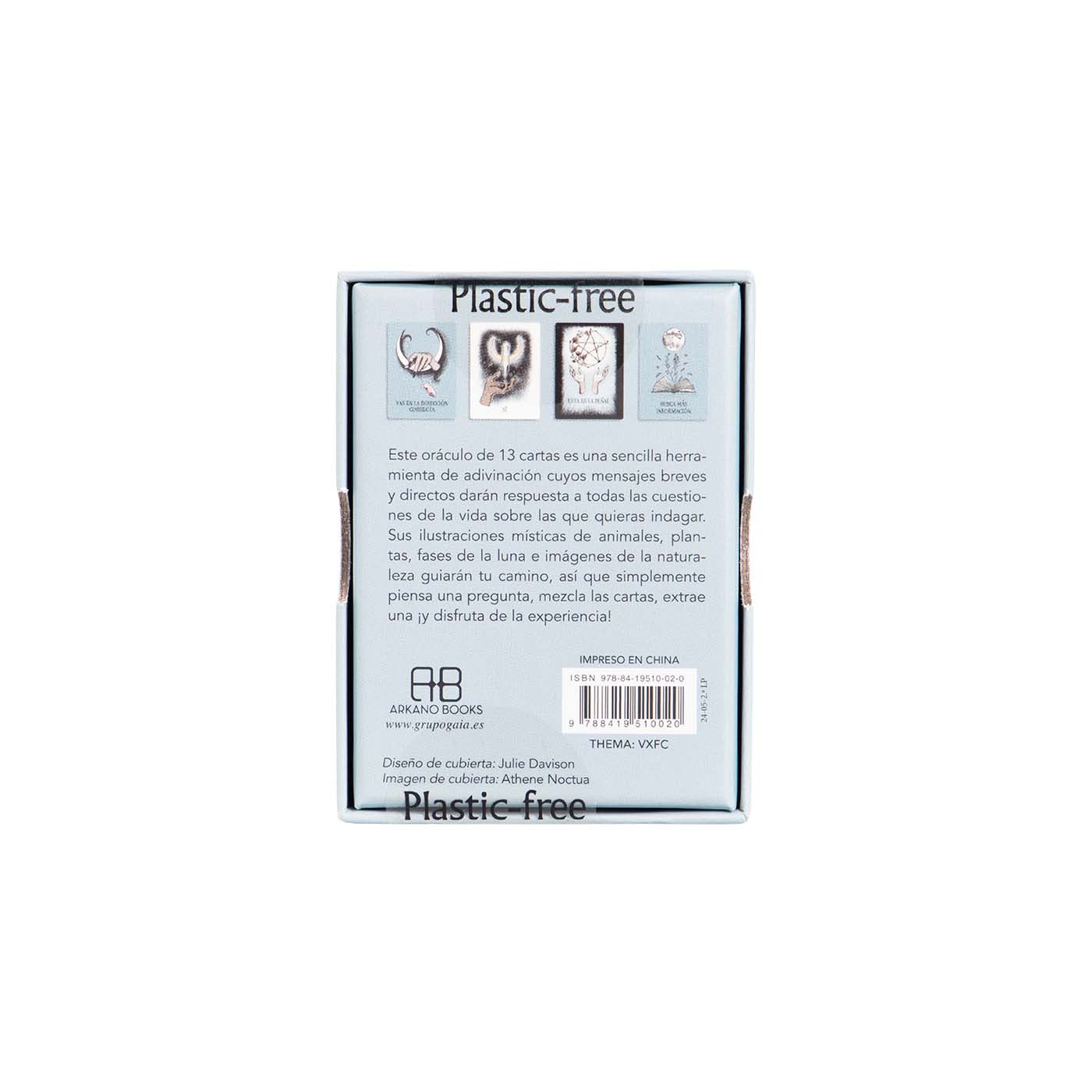 Incluye 13 cartas ilustradas con símbolos místicos como animales, plantas, fases lunares y elementos de la naturaleza. Ofrece una experiencia intuitiva y accesible: solo necesitas pensar una pregunta, barajar, elegir una carta y dejarte guiar. Este oráculo ha sido creado con el propósito de ofrecer una conexión directa y clara con tu intuición, sin necesidad de grandes conocimientos previos.