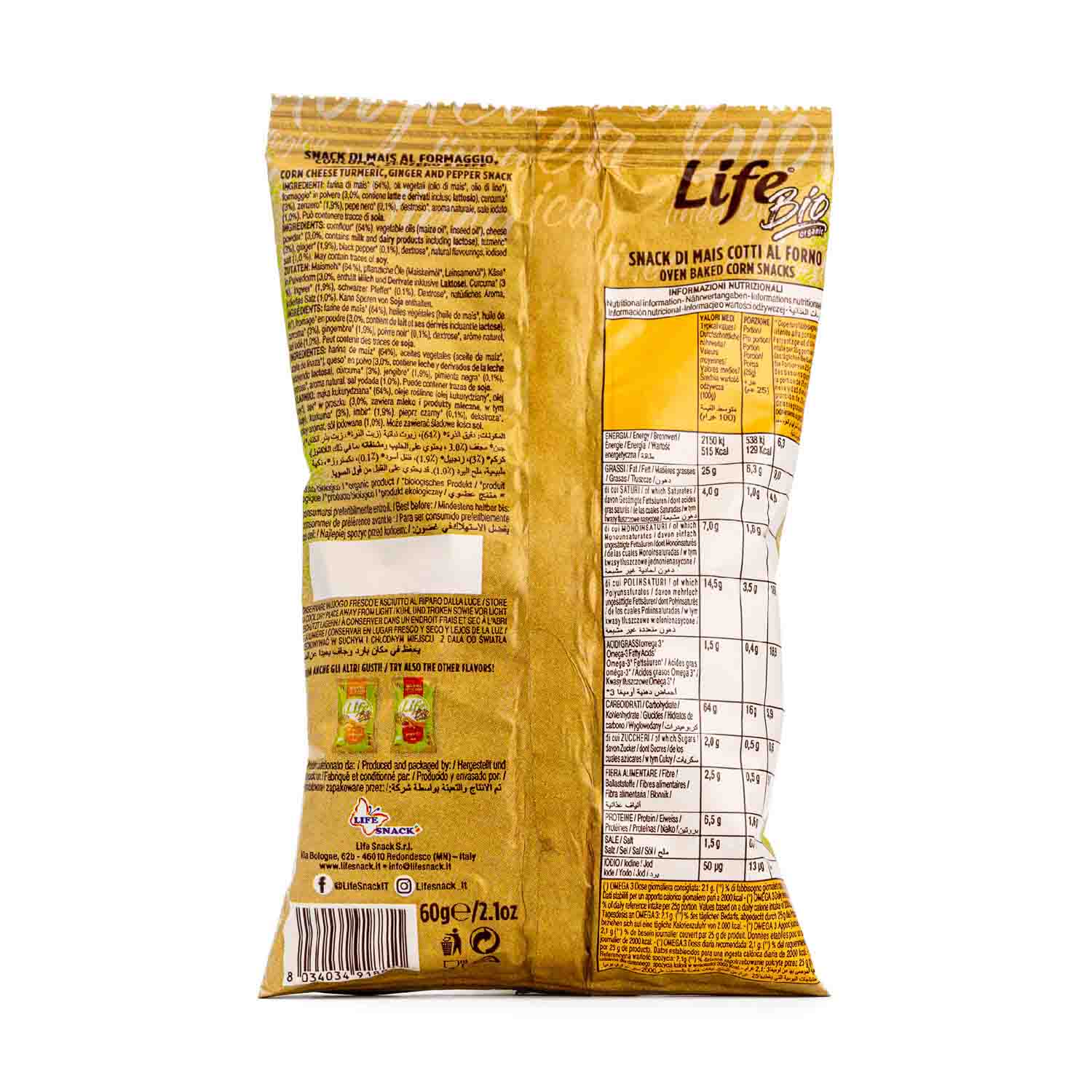Palitos de Maíz con Cúrcuma Sabor a Queso, Jengibre y Paprika 60g Life Bio