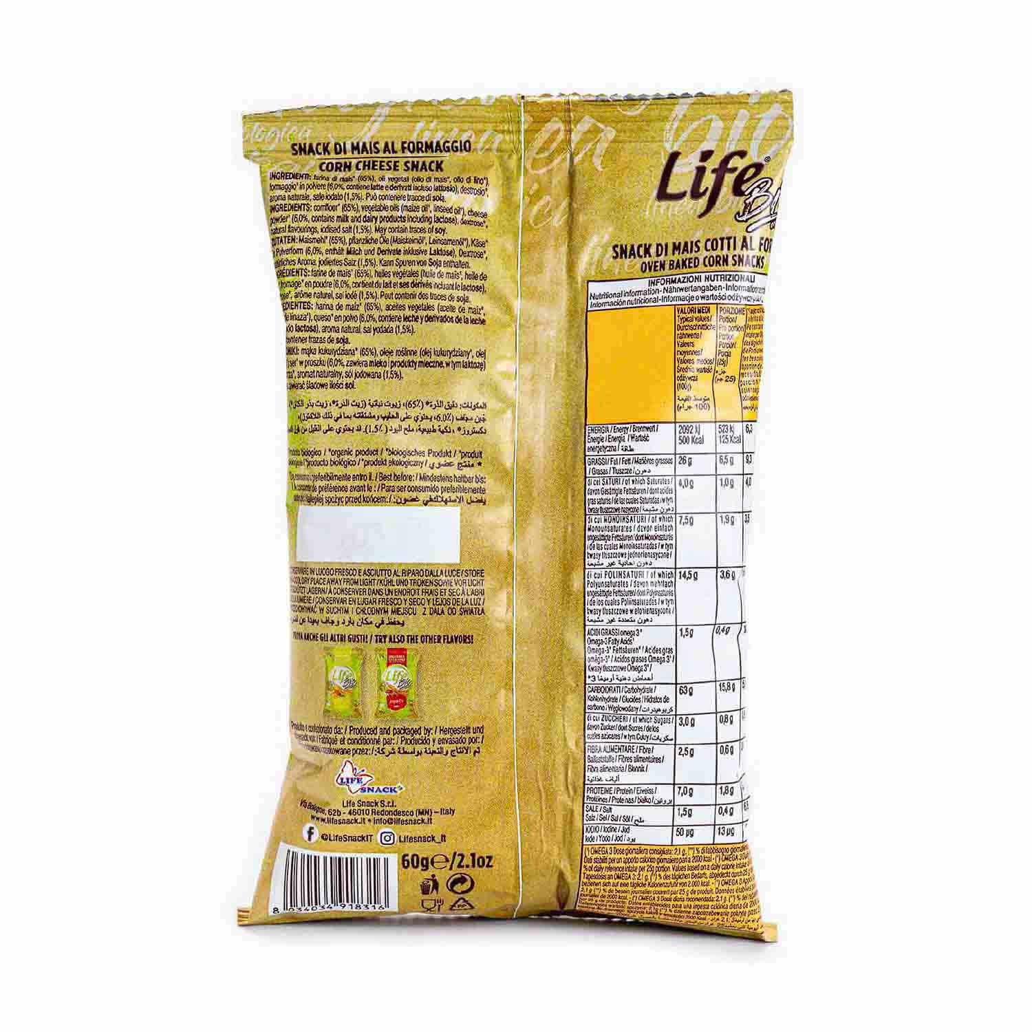 Palitos de maíz con sabor a queso de Life Bio. Crujientes palitos de maíz ecológico con sabor a queso. Delicioso snack para picar a cualquier hora. Sin gluten.