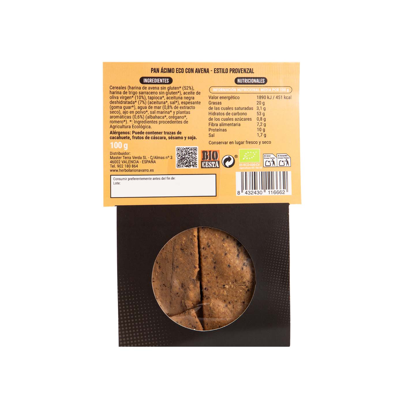 Crujiente, saludable y lleno de sabor, este pan ácimo ecológico combina avena integral y hierbas aromáticas provenzales. Ideal para desayunos, meriendas o snacks nutritivos, 100% vegano y sin levadura.