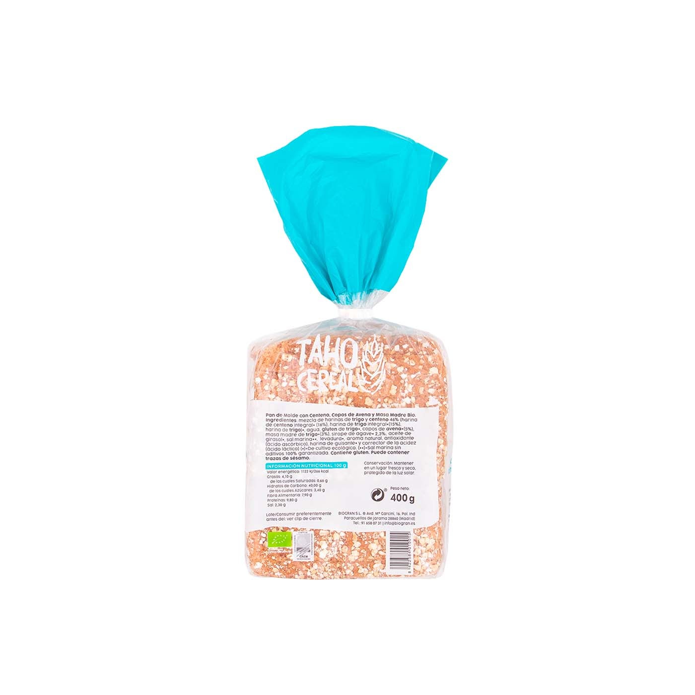 Pan de molde centeno y avena bio 400g Taho Cereal