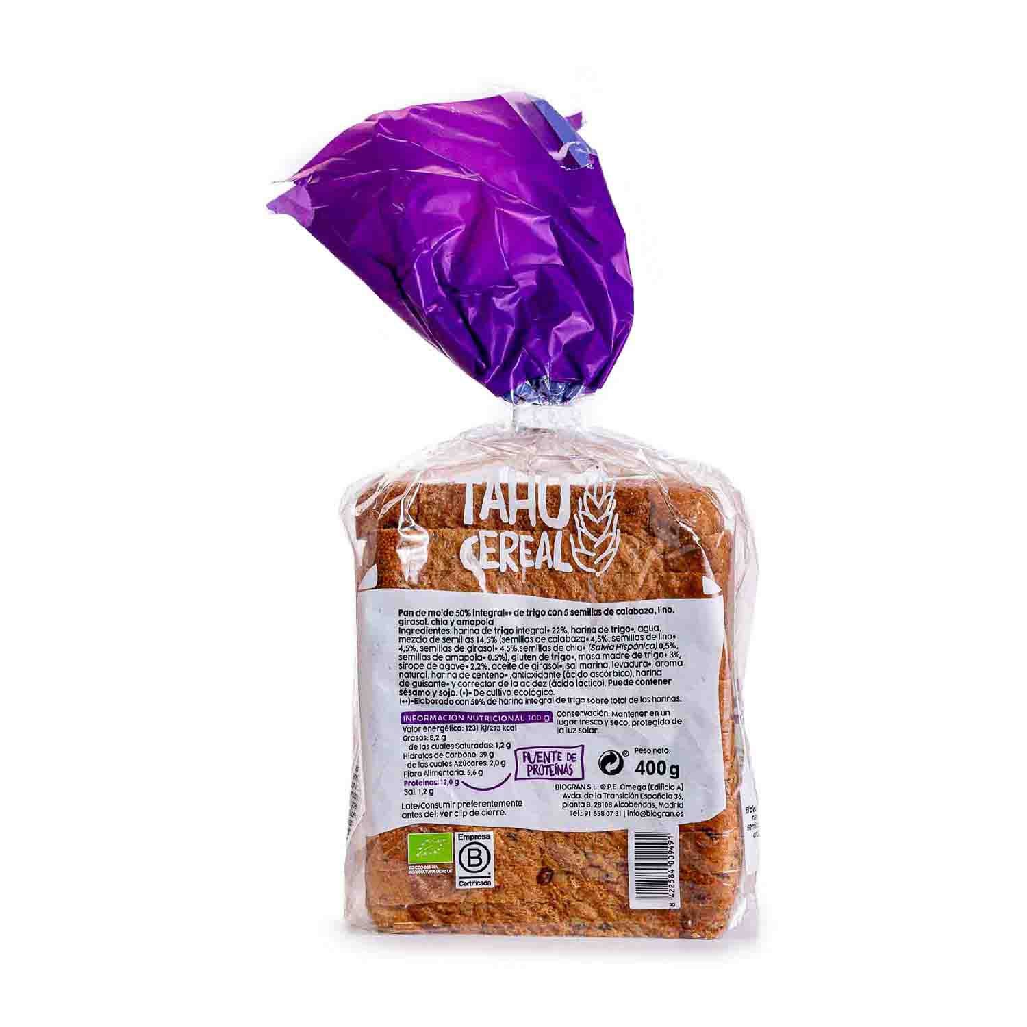 Pan de Molde con 5 Semillas 400g Taho Cereal