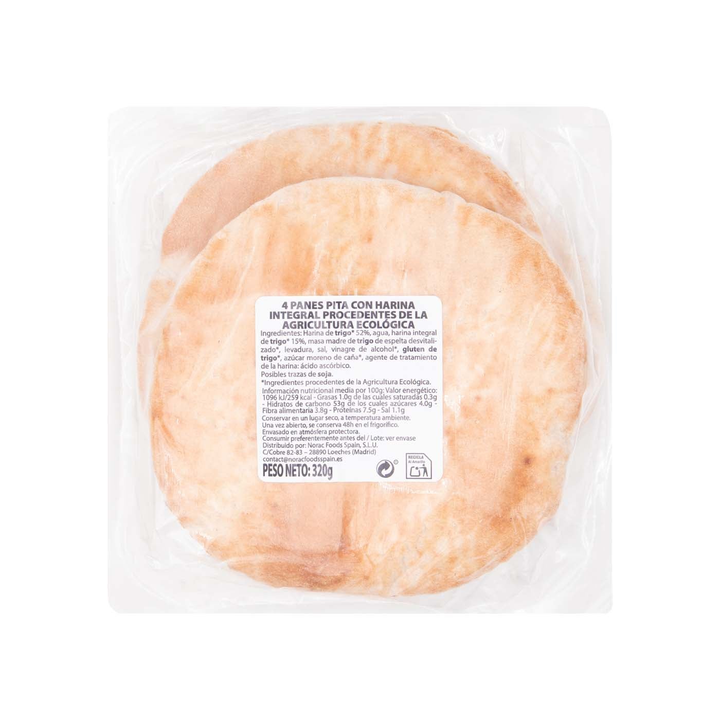 Suaves y esponjosos panes de pita de Bien, elaborados con masa madre de trigo de espelta. Ideales para elaborar en platos como el falafel, el kebab o el shawarma, y también se puede servir como acompañamiento o aperitivo con salsas o dips.
