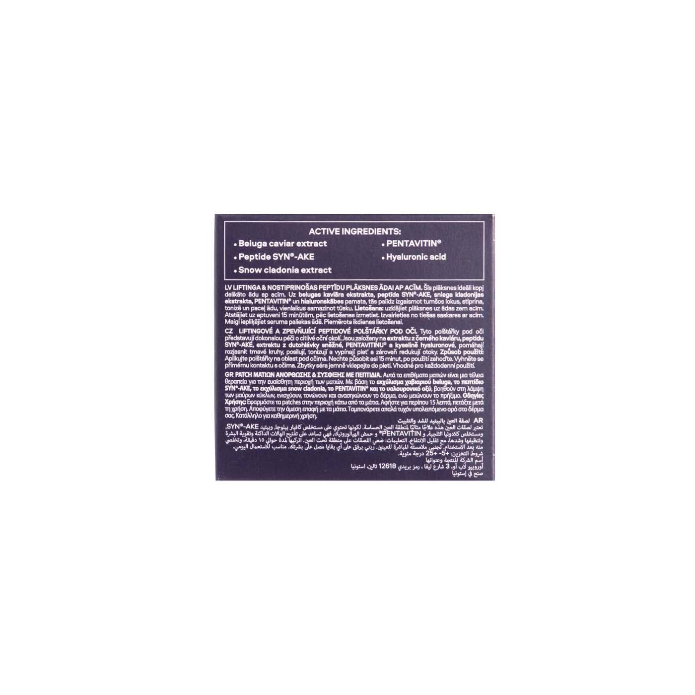 Parches diseñados para revitalizar y fortalecer la delicada piel del contorno de los ojos. Gracias a su fórmula enriquecida con péptidos y extracto de caviar, ayudan a reducir la hinchazón, suavizar las arrugas y mejorar la firmeza, proporcionando un efecto rejuvenecedor inmediato.