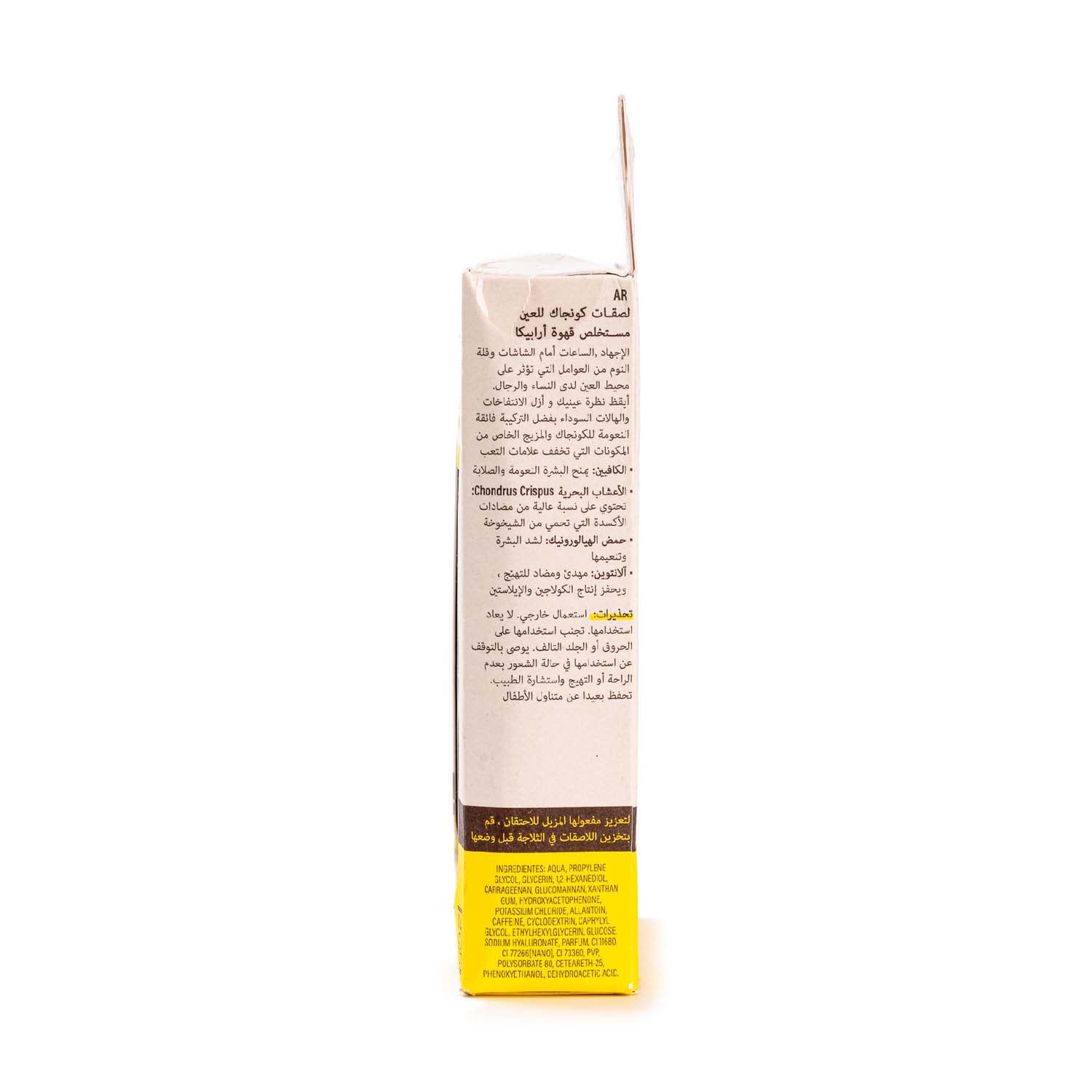 La cafeína es conocida por sus propiedades estimulantes, la cafeína aporta una dosis de luminosidad y firmeza al contorno de los ojos. El alga Chondrus crispus es rica en antioxidantes. El ácido hialurónico ayuda a retener la humedad en la piel. Por último, la alantoína calma y es esencial para ayudar a mantener la piel firme y elástica.