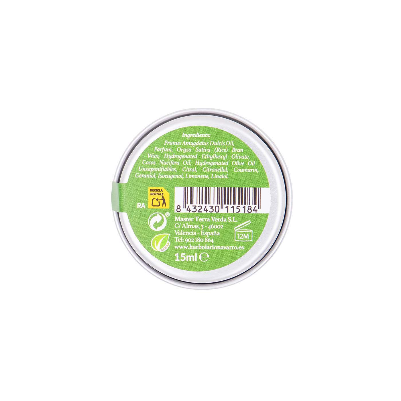 Prunus Amygdalus Dulcis Oil, Parfum, Oryza Sativa (rice) Bran Wax, Hydrogenated Ethylhexyl Olivate, Cocos Nucifera Oil, Hydrogenated Olive Oil Unsaponifiables, Citral, Citronellol, Coumarin, Geraniol, Isoeugenol, Limonene, Linalol.