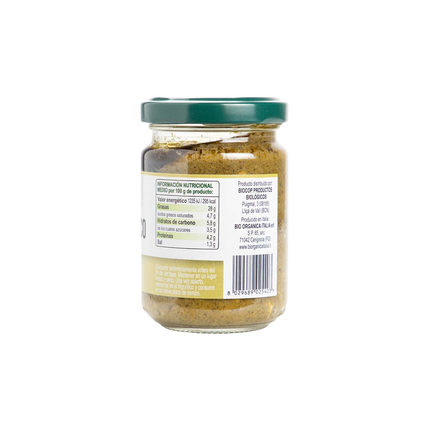 Albahaca* 65,5%, aceite de oliva virgen extra* 23%, ANACARDOS*, QUESO* pecorino, piñones*, sal, zumo de limón*, ajo en polvo*.
