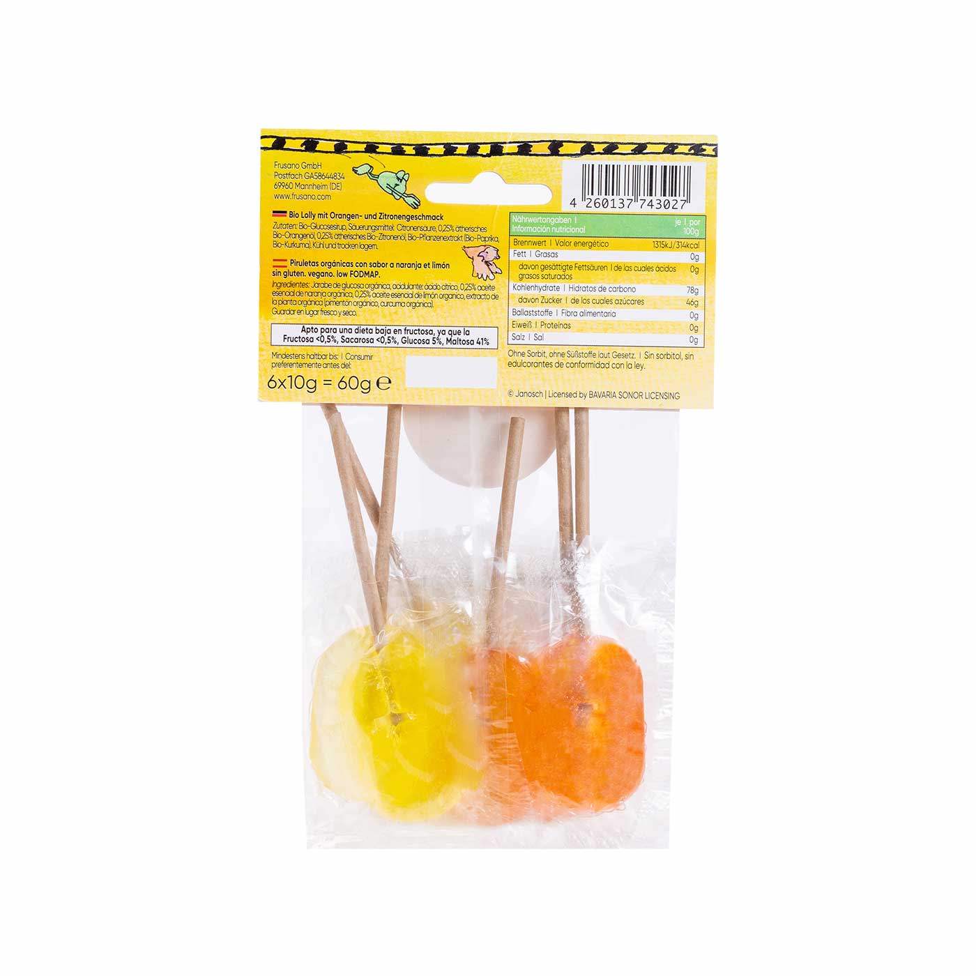 Piruletas sabor Naranja y Limón sin Fructosa 60g Frusano