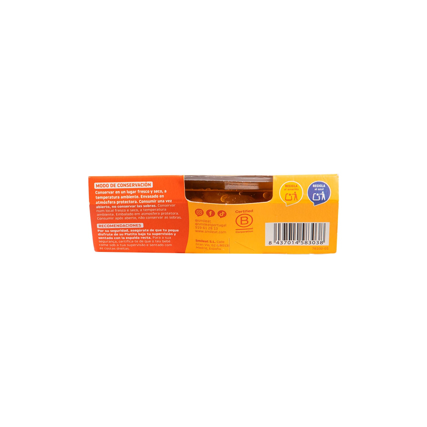 Este platito ofrece una comida elaborada con ingredientes ecológicos seleccionados. Su receta es equilibrada y suave, sin conservantes ni sal añadida, y está enriquecida con aceite de oliva virgen extra. La marca Smileat se compromete con la agricultura ecológica y la sostenibilidad, ofreciendo un producto de sabor auténtico.