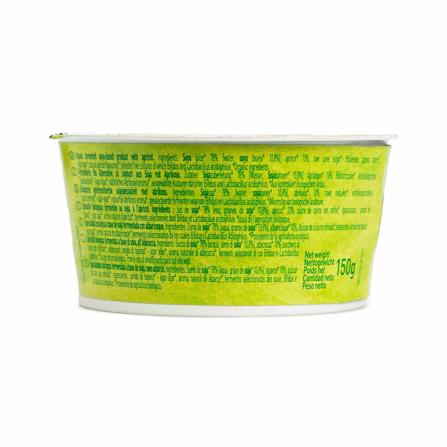 Bebida de soja* 78 %, albaricoque* 10 %, azúcar de caña sin refinar*, aroma natural de albaricoque*, espesantes: pectina – harina de algarroba*, corrector de acidez: citrato de calcio, fermentos seleccionados de los cuales Bífidus y Lactobacillus Acidophilus.