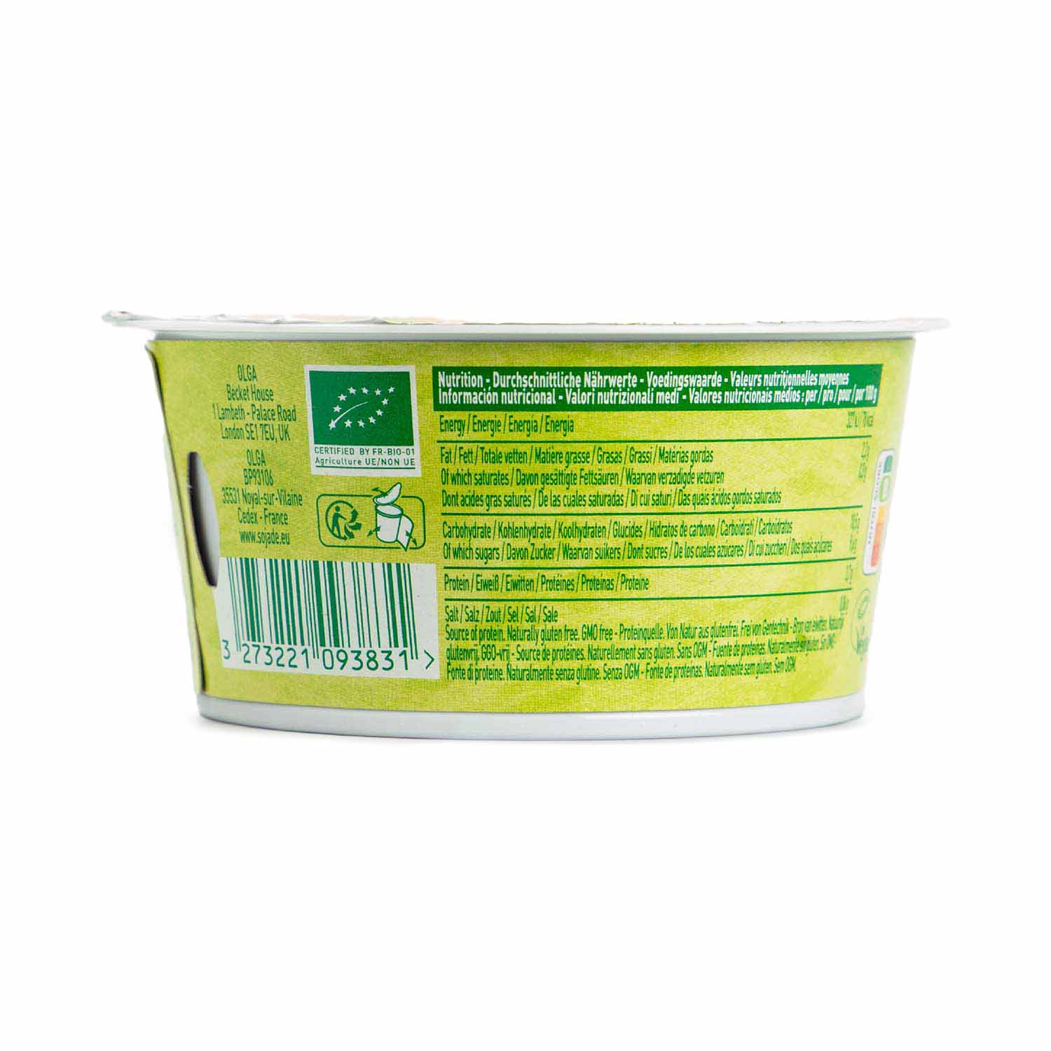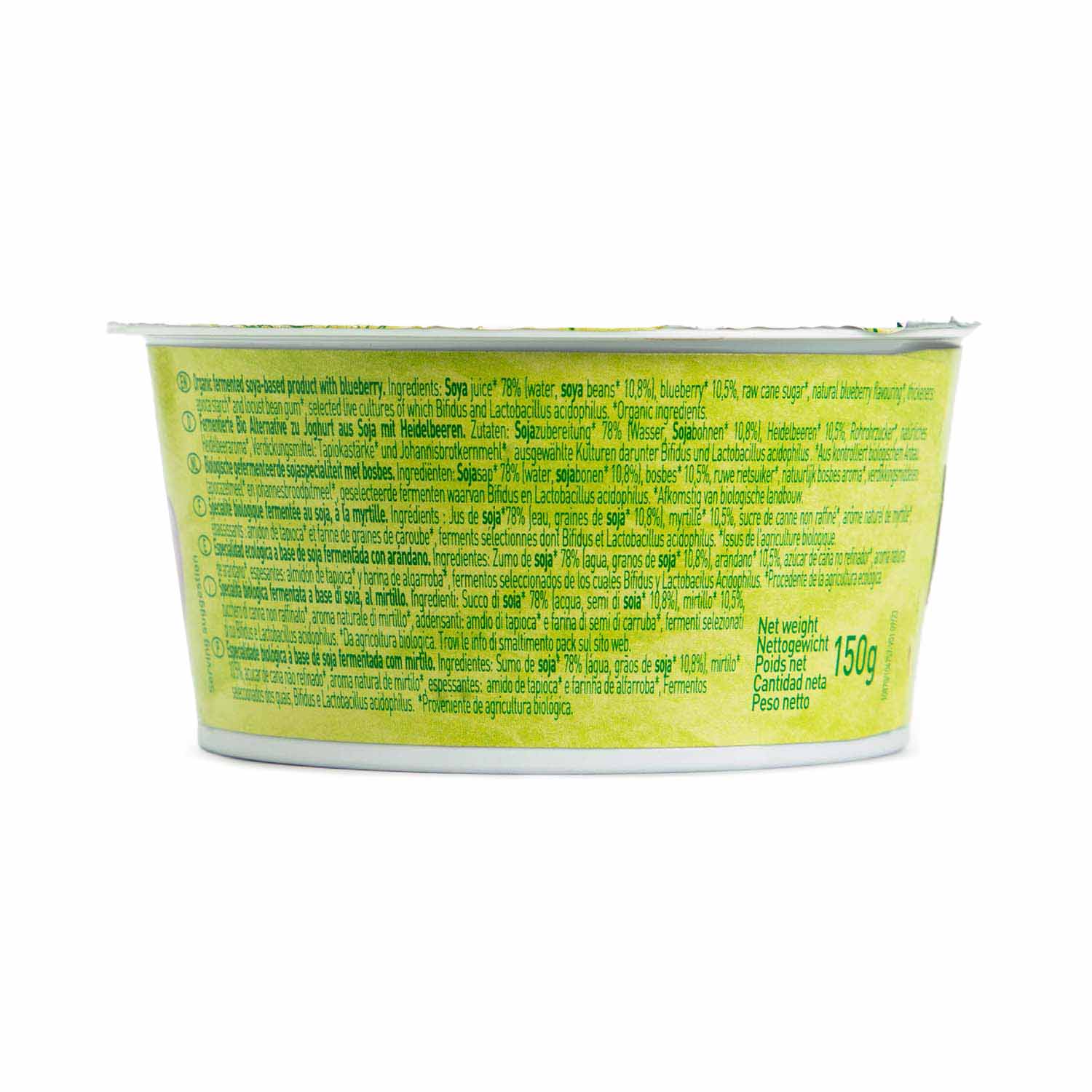Bebida de soja* 78 %, arándanos* 10,5 %, azúcar de caña sin refinar*, aroma natural de arándanos*, espesante: almidón de tapioca* y harina de algarroba*, fermentos seleccionados de los cuales Bífidus y Lactobacillus Acidophilus.