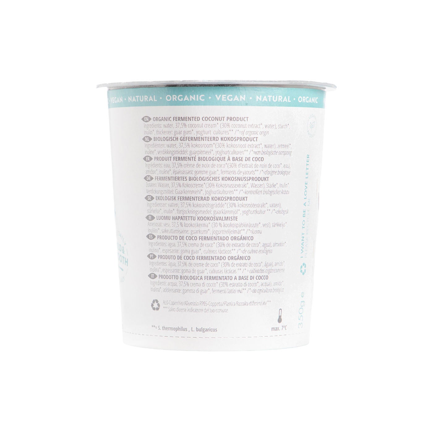 Agua37,5% Crema de coco* (30% extracto de coco*, agua)Almidón de tapioca*Inulina*Espesante (goma guar*)Fermentos: S. Thermophilus, L. Bulgaricus, L. Acidophilus.