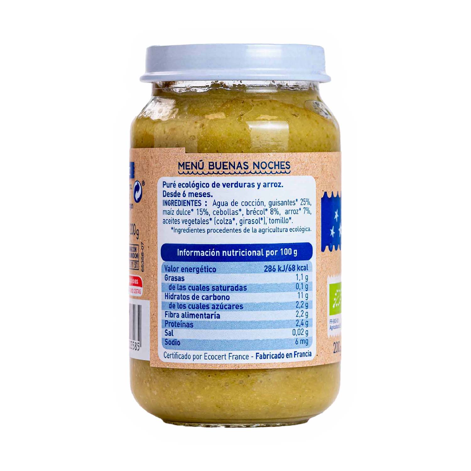 Potito Buenas Noches con guisantes y maíz 200g Babybio