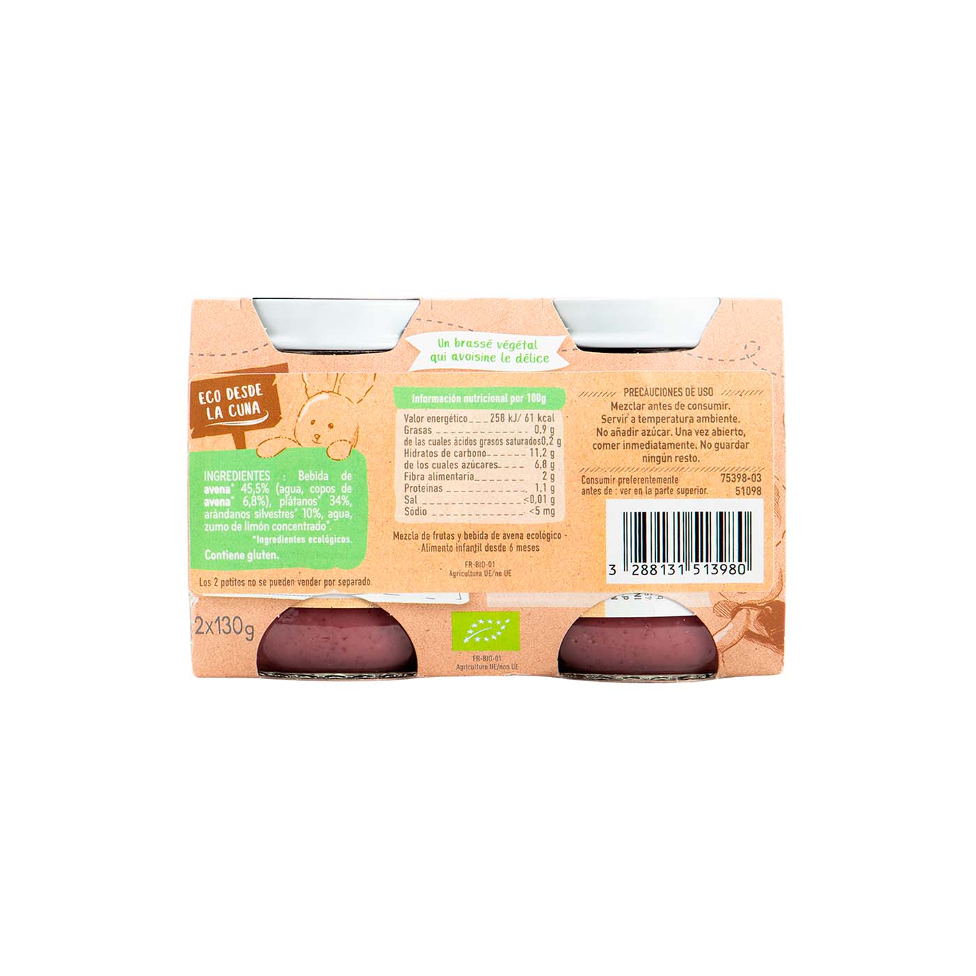 Potito de Avena con Plátano y Arándanos 2x130g Babybio