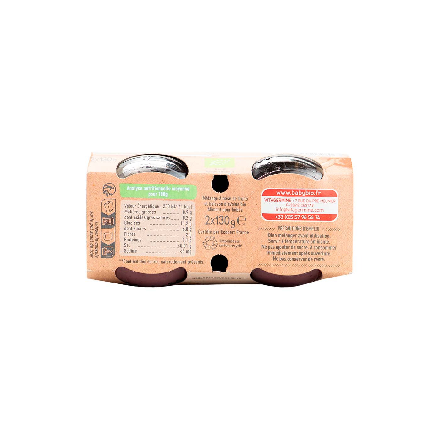 El Potito de Avena con Plátano y Arándanos de Babybio es un postre 100% vegetal, alternativa ideal para diversificar la dieta del bebé a partir de los 6 meses de edad, introduciendo nuevos sabores sin contener azúcares añadidos.