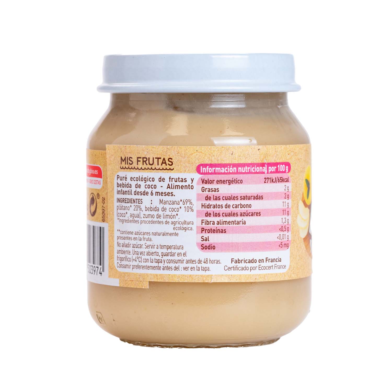 Potito de Manzana, Plátano y Bebida de Coco 130g Babybio