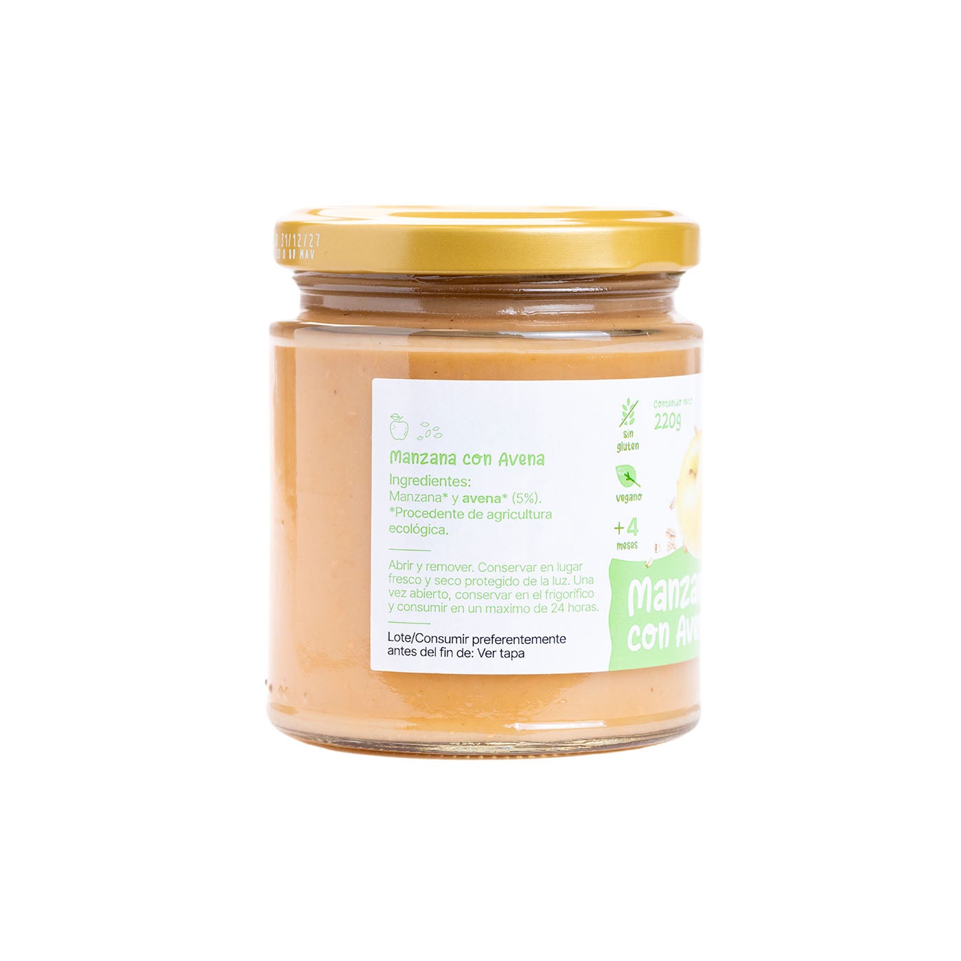 Dulce Potito de Manzana y Avena Eco de Bio Cesta, donde la frescura de las manzanas se fusiona con la suavidad de la avena ecológica. ¡Nutrición deliciosa para los más pequeños!