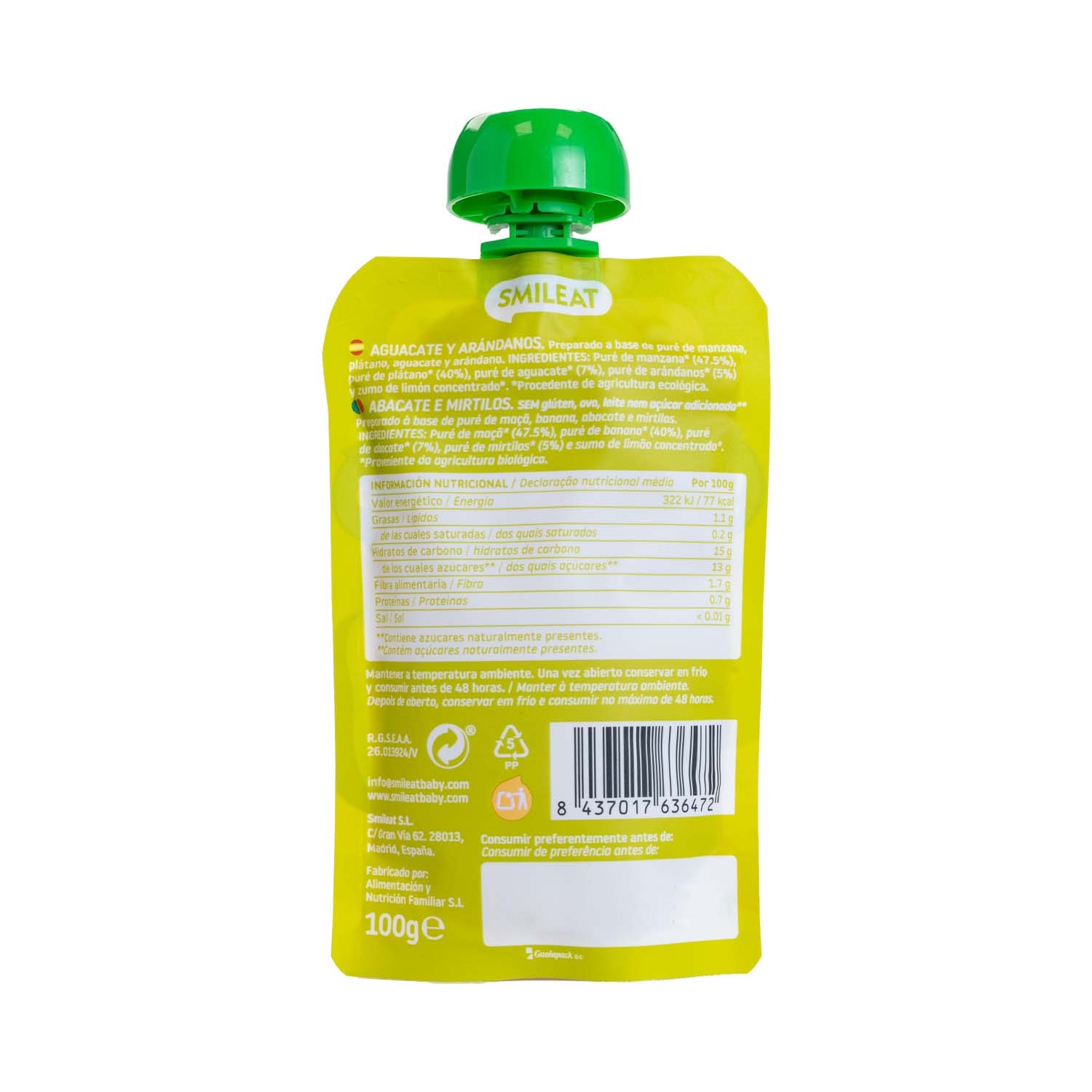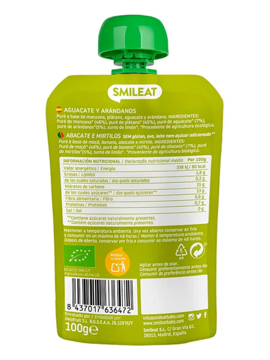 Pouch de Aguacate y Arándanos 100g Smileat