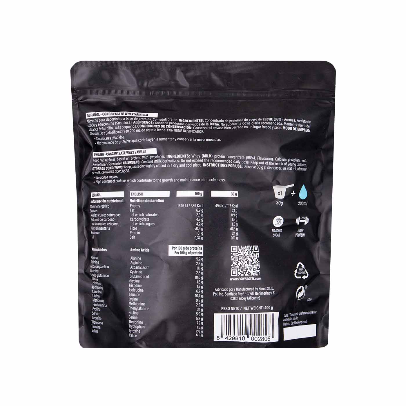 Descubre el exquisito sabor a vainilla de la Proteína Whey Concentrada de Powergym. Tu opción ideal para potenciar tu rendimiento físico de manera óptima, elaborada con proteína de suero de leche. Sin gluten.
