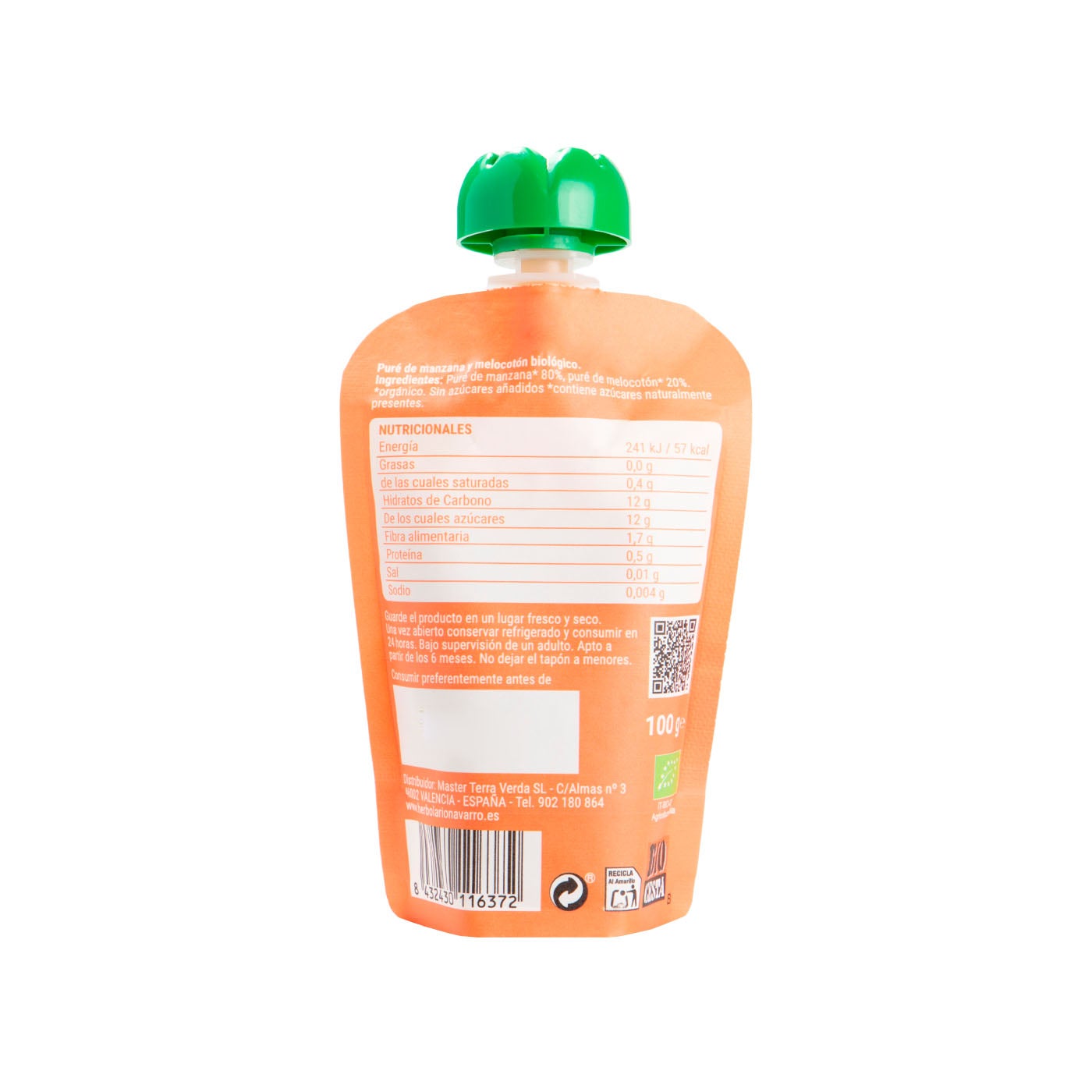 - Elaborado con fruta 100% ecológica: manzana (80%) y melocotón (20%).