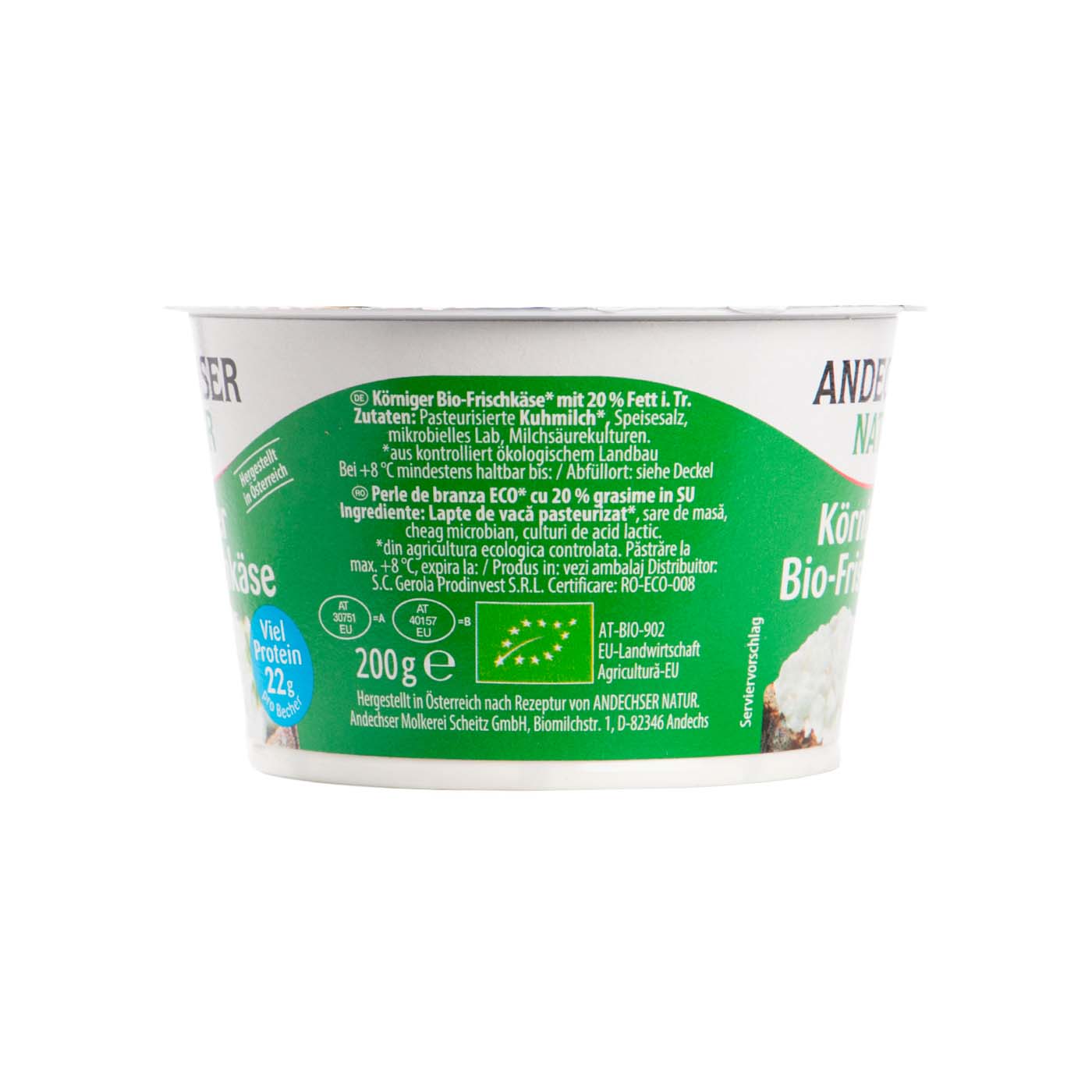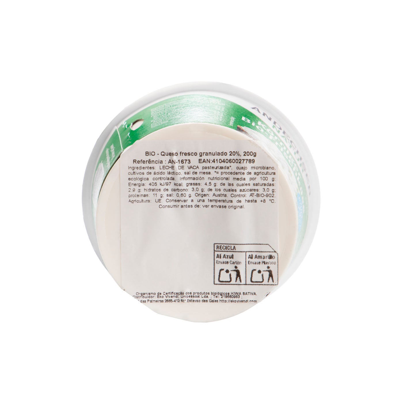 El Queso cottage 200g Andechser Natur es un queso fresco ecológico elaborado a partir de leche de vaca procedente de ganadería orgánica. Se caracteriza por su textura granulada, su sabor suave y ligeramente ácido y su perfil nutricional equilibrado. Es una opción ideal para quienes buscan un alimento natural, rico en proteínas y bajo en grasas, perfecto para incluir en una alimentación saludable y consciente.