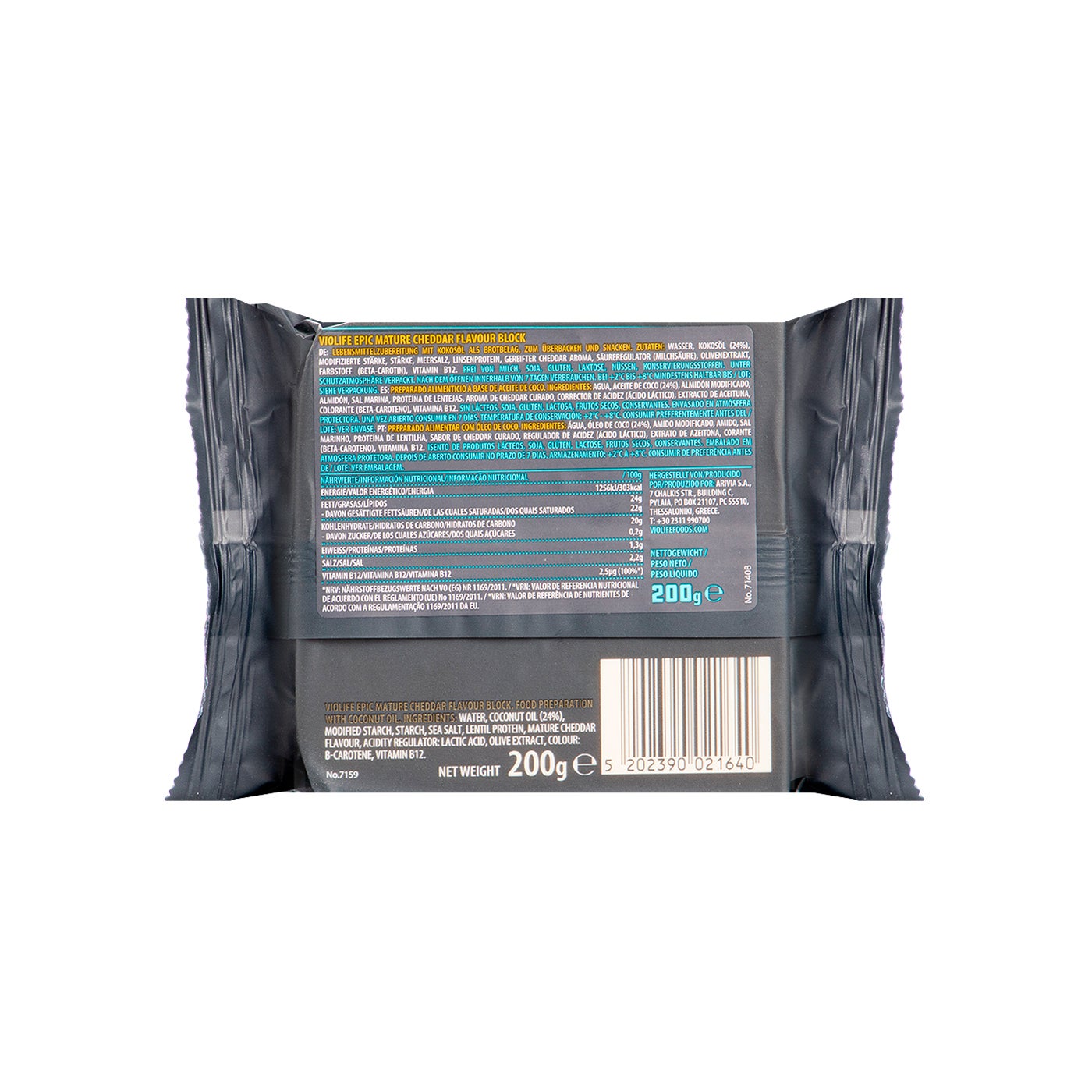 ¡Descubre el auténtico sabor cheddar sin lácteos con nuestro Queso Vegano en Bloque Epic Mature de Violife! Una opción deliciosa y versátil para tus recetas favoritas. ¡Haz que cada bocado sea épico con Violife!
