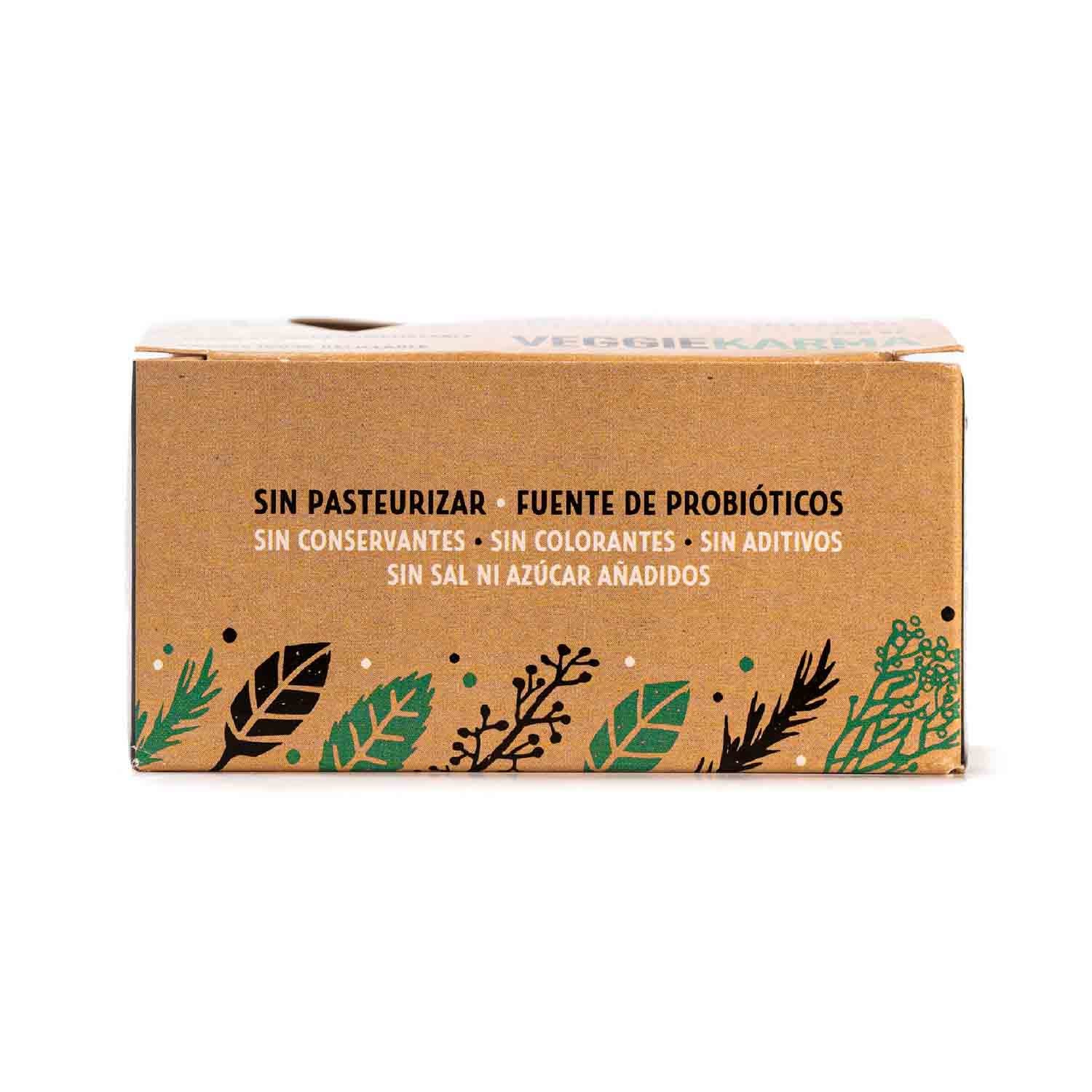 El Queso Vegano Semicurado a las Finas Hierbas de Veggie Karma es un queso vegetal artesanal, fermentado y ecológico. Es libre de gluten y se considera un alimento crudo y saludable, rico en proteínas de alta calidad, grasas saludables (omega 3, 6 y 9), probióticos, vitaminas y minerales. Contiene una mezcla de finas hierbas provenzales, reconocidas por su contenido en fibra, calcio y vitamina C.