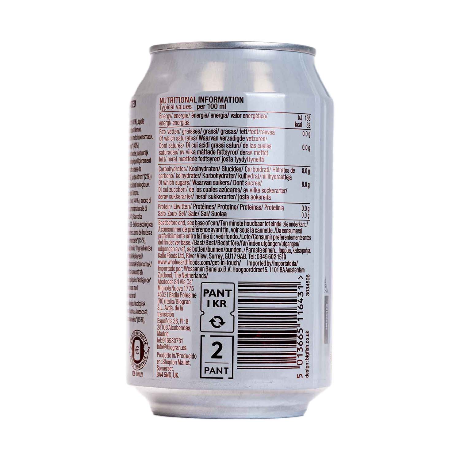 Refresco de limón sin azúcar 330ml Whole Earth
