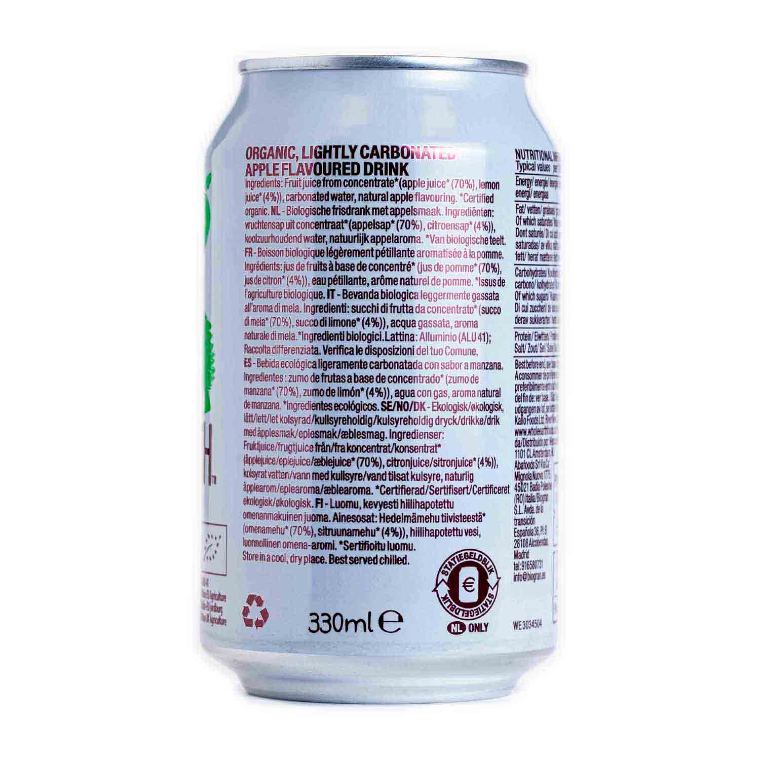 Refresco de manzana sin azúcar 330ml Whole Earth