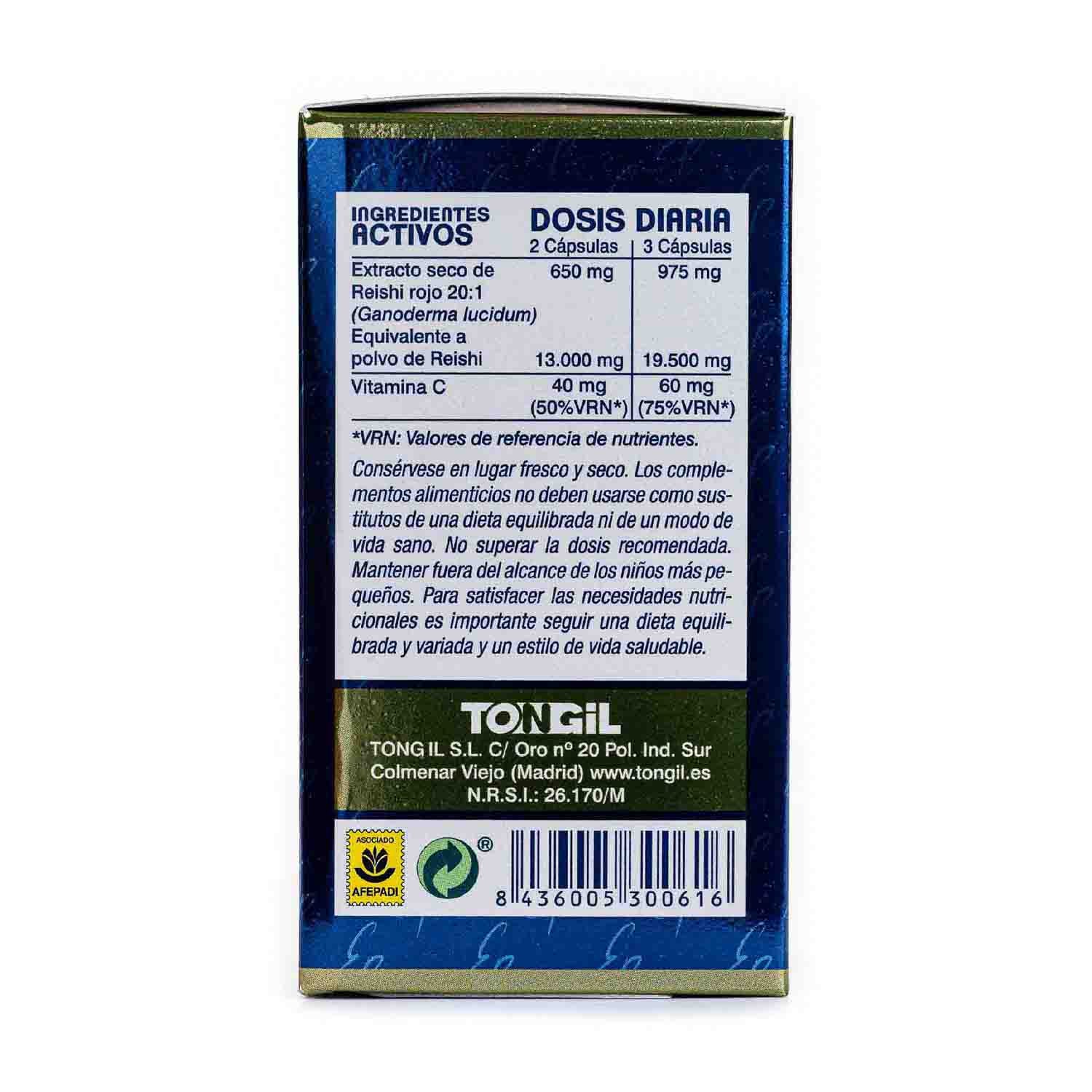 Reishi 6500mg. en cápsulas de Tongil. Extracto seco concentrado 20:1 de Reishi rojo y vitamina C
