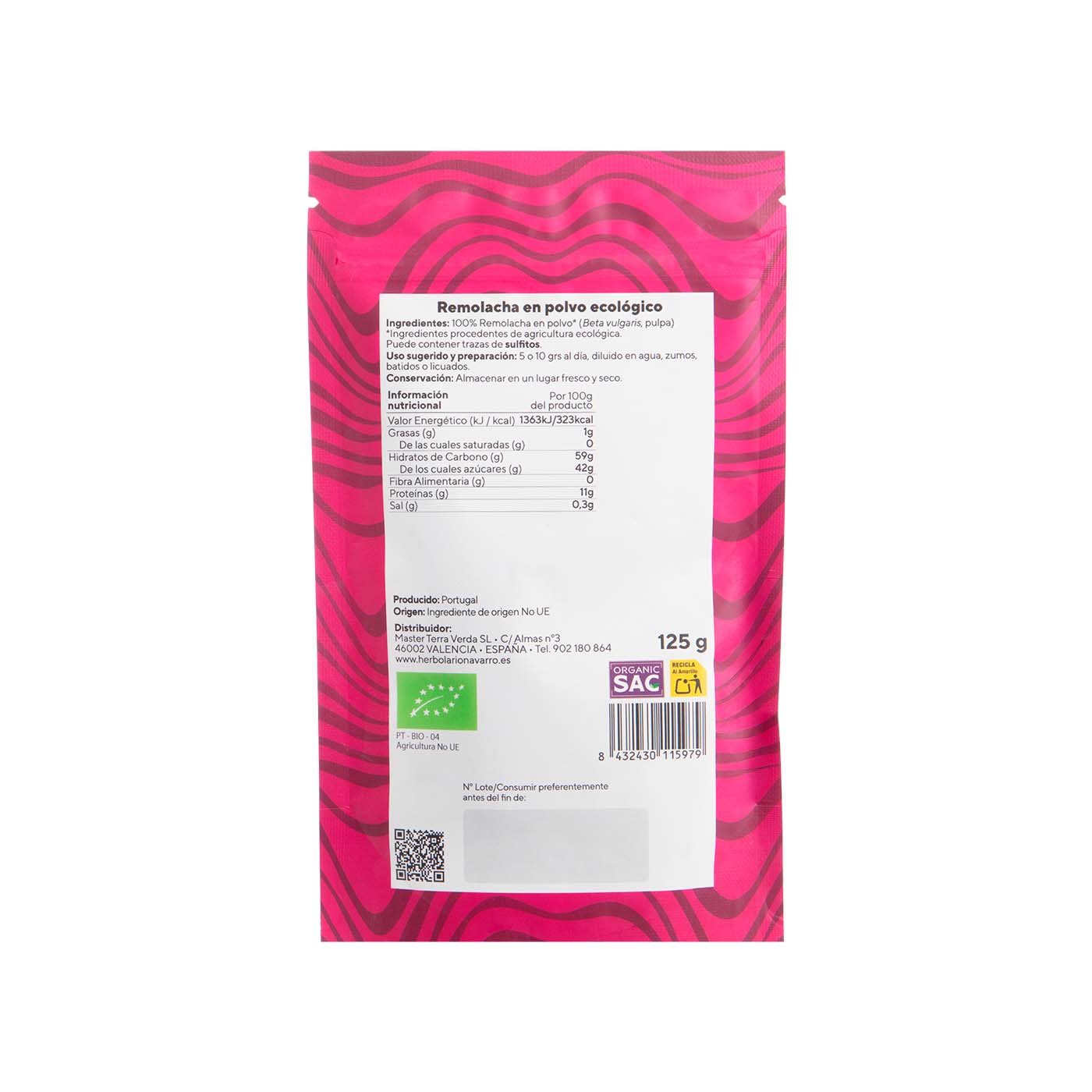 100% Remolacha en polvo* (Beta vulgaris pulpa)
