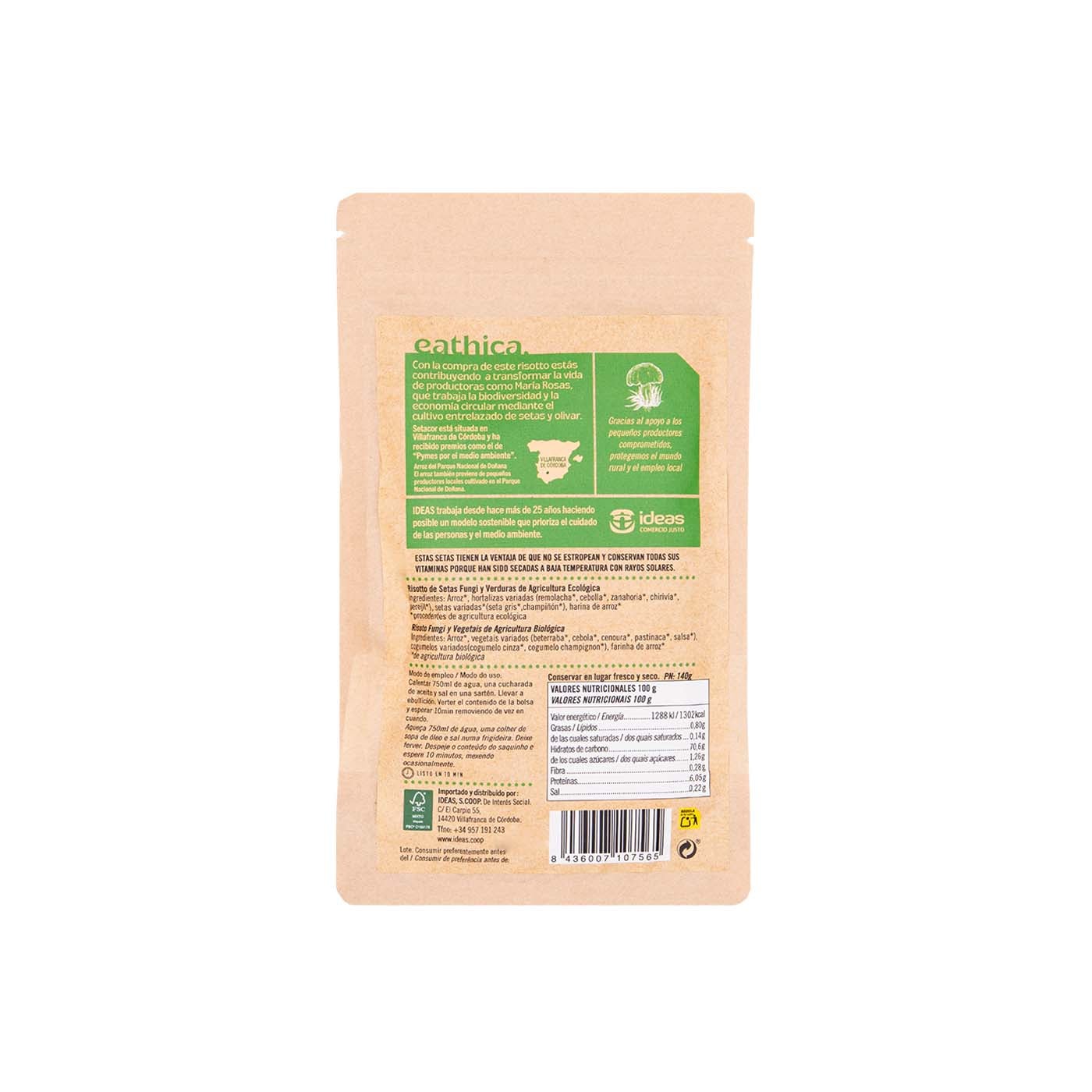 Rissotto de Setas Fungi y Verdura 140g Ethiquable