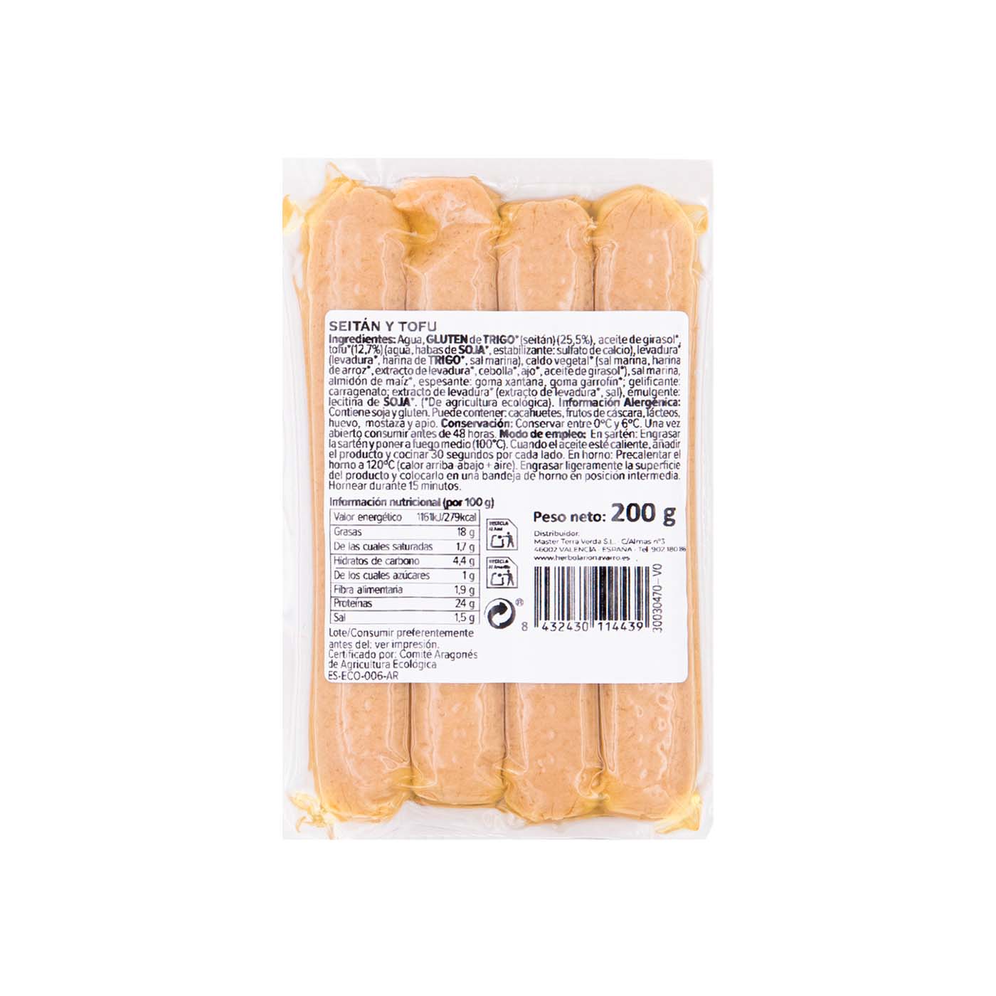 Producto vegetariano elaborado con una combinación de gluten de trigo (seitán) y tofu, enriquecido con una mezcla de ingredientes naturales y orgánicos. Estas salchichas ofrecen una alternativa sabrosa y versátil a las salchichas convencionales, sin contener ingredientes de origen animal.