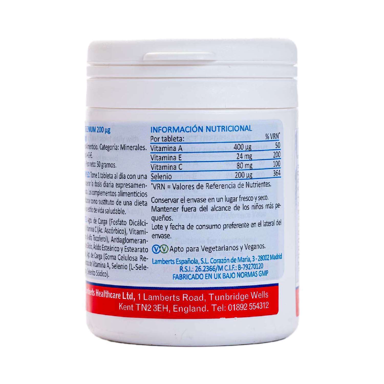 Selenio con Vitaminas A,C y E 100 comp Lamberts