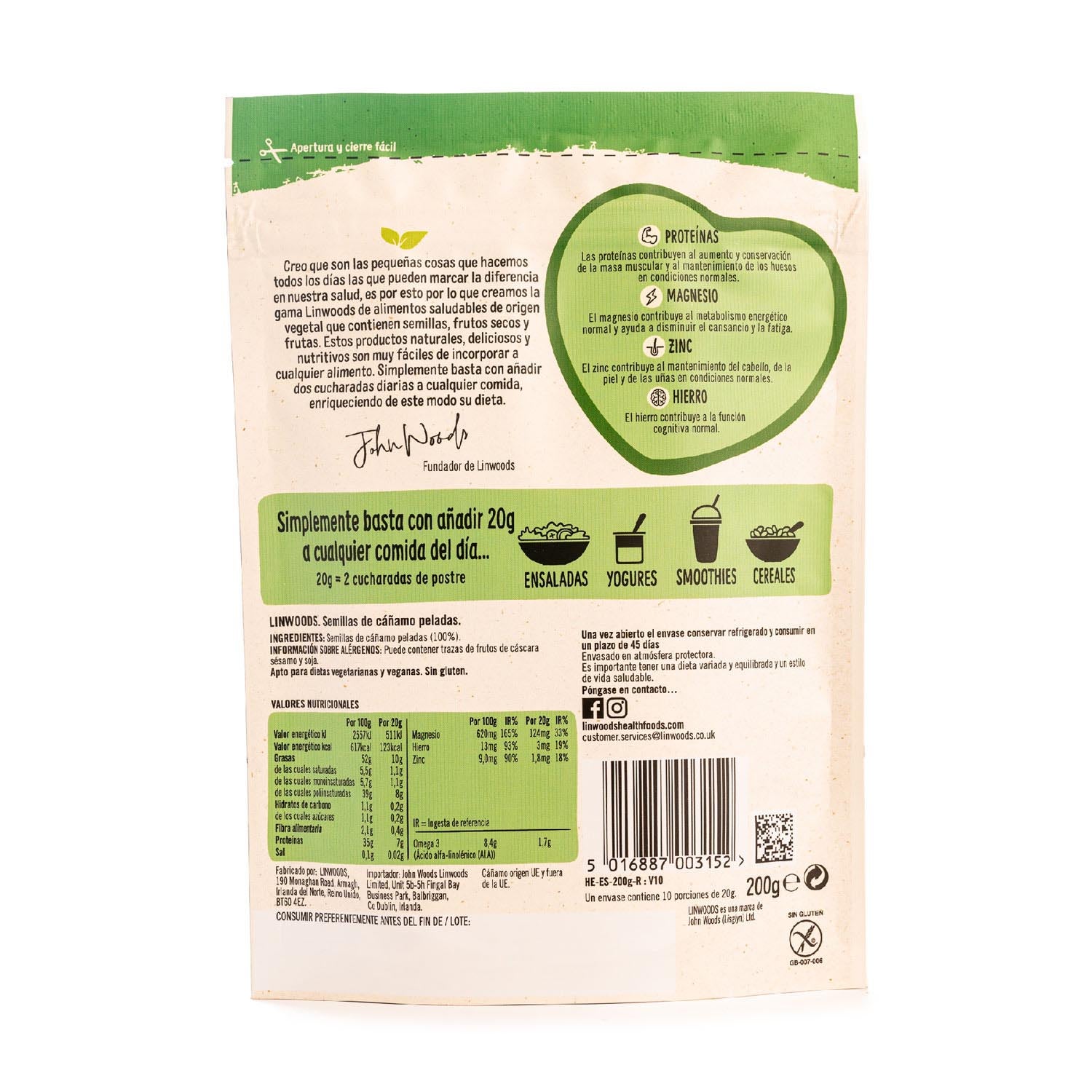 Semillas de Cáñamo Peladas 200g Linwoods
