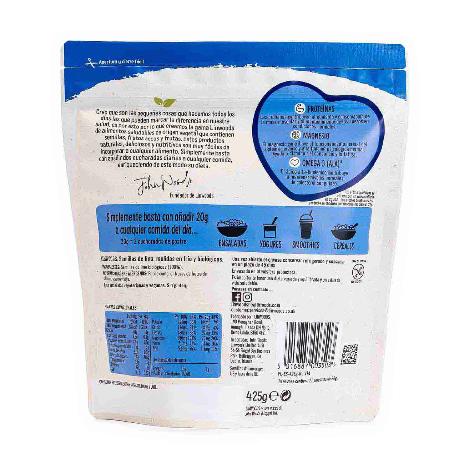 Semillas De Lino Molidas 425g Linwoods