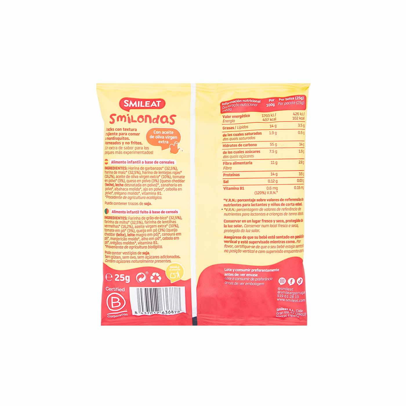 ¡El snack delicioso que acompaña el crecimiento de tu pequeño! Smilondas de Tomate y Queso, el snack ideal para los más peques.