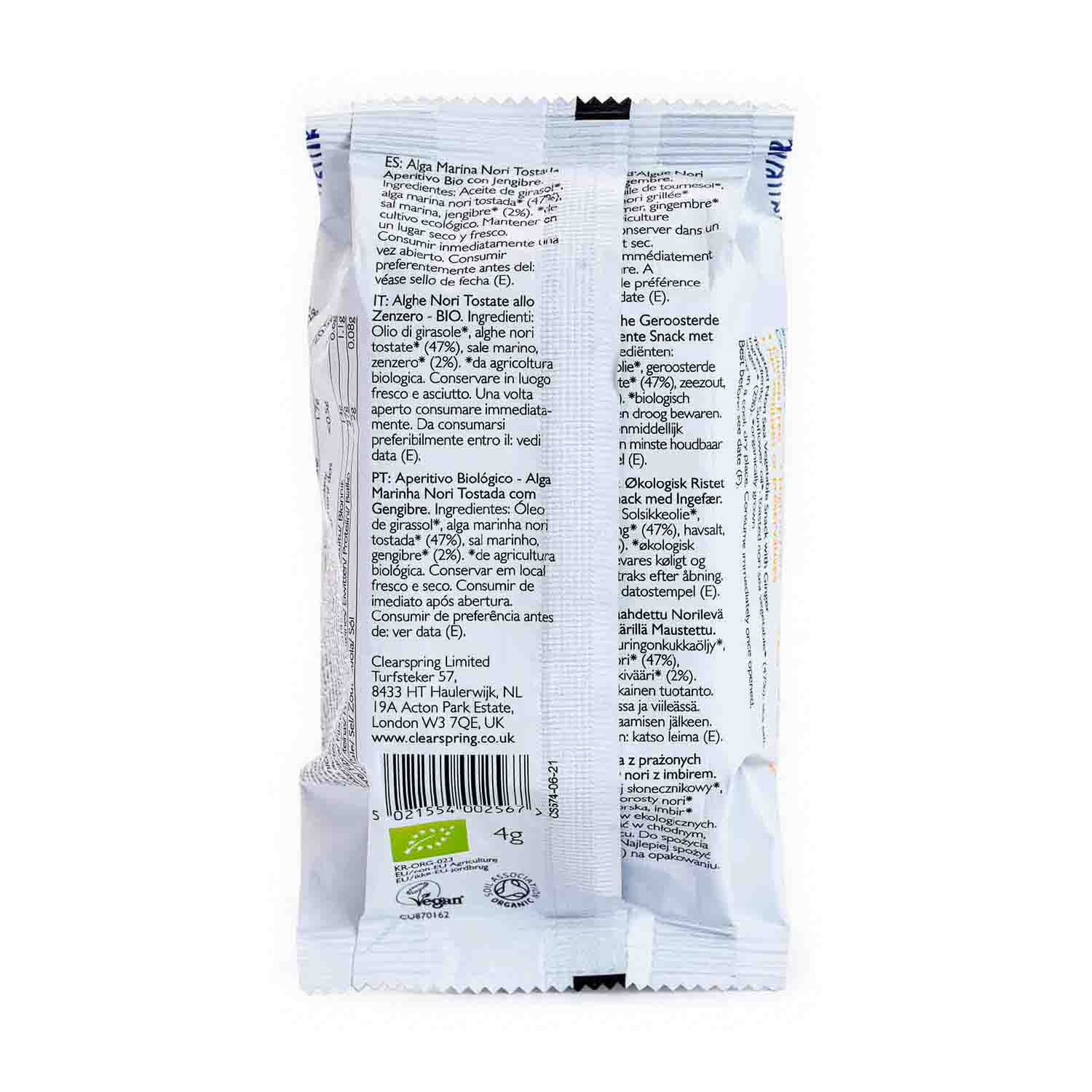 Snack de Alga Nori con Jengibre Clearspring