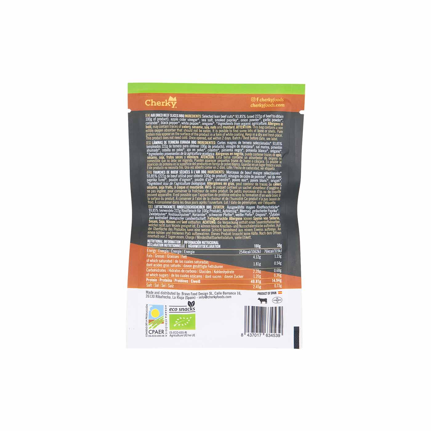 Snack Proteico Biltong de Ternera sabor BBQ 30g Cherky