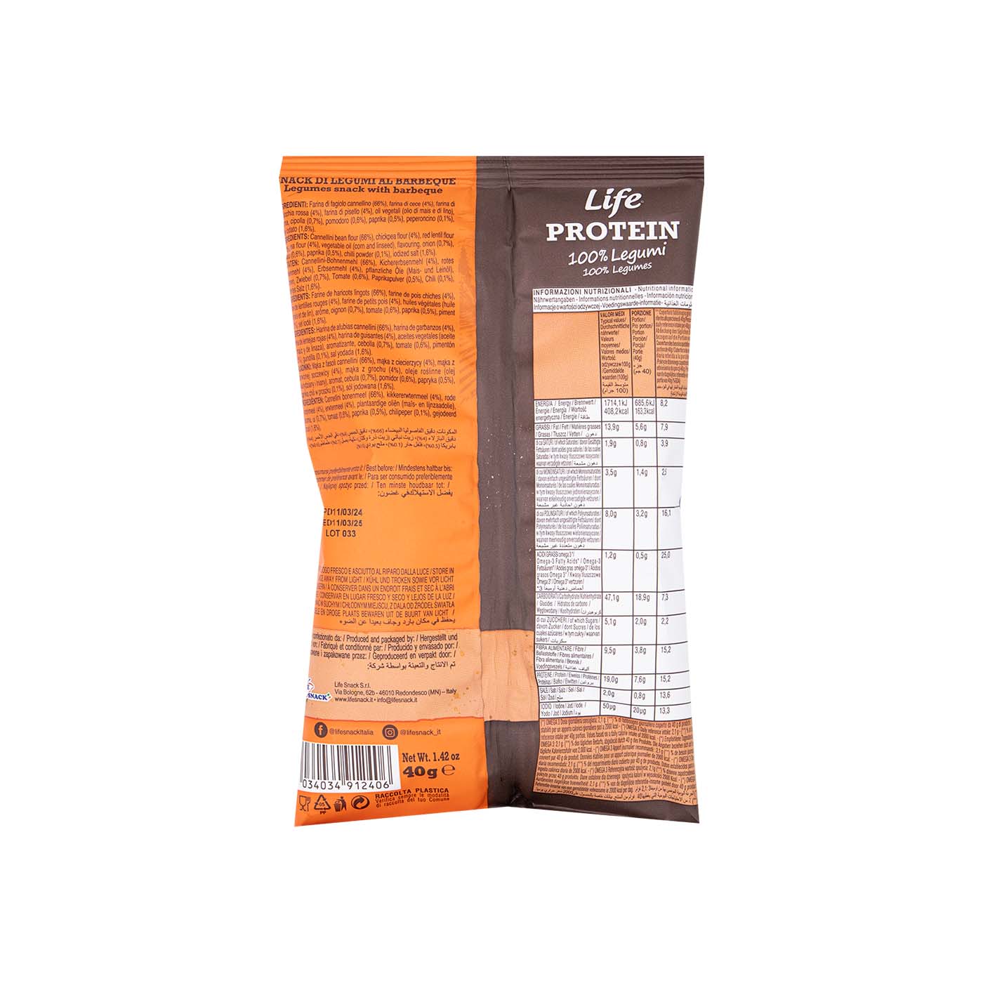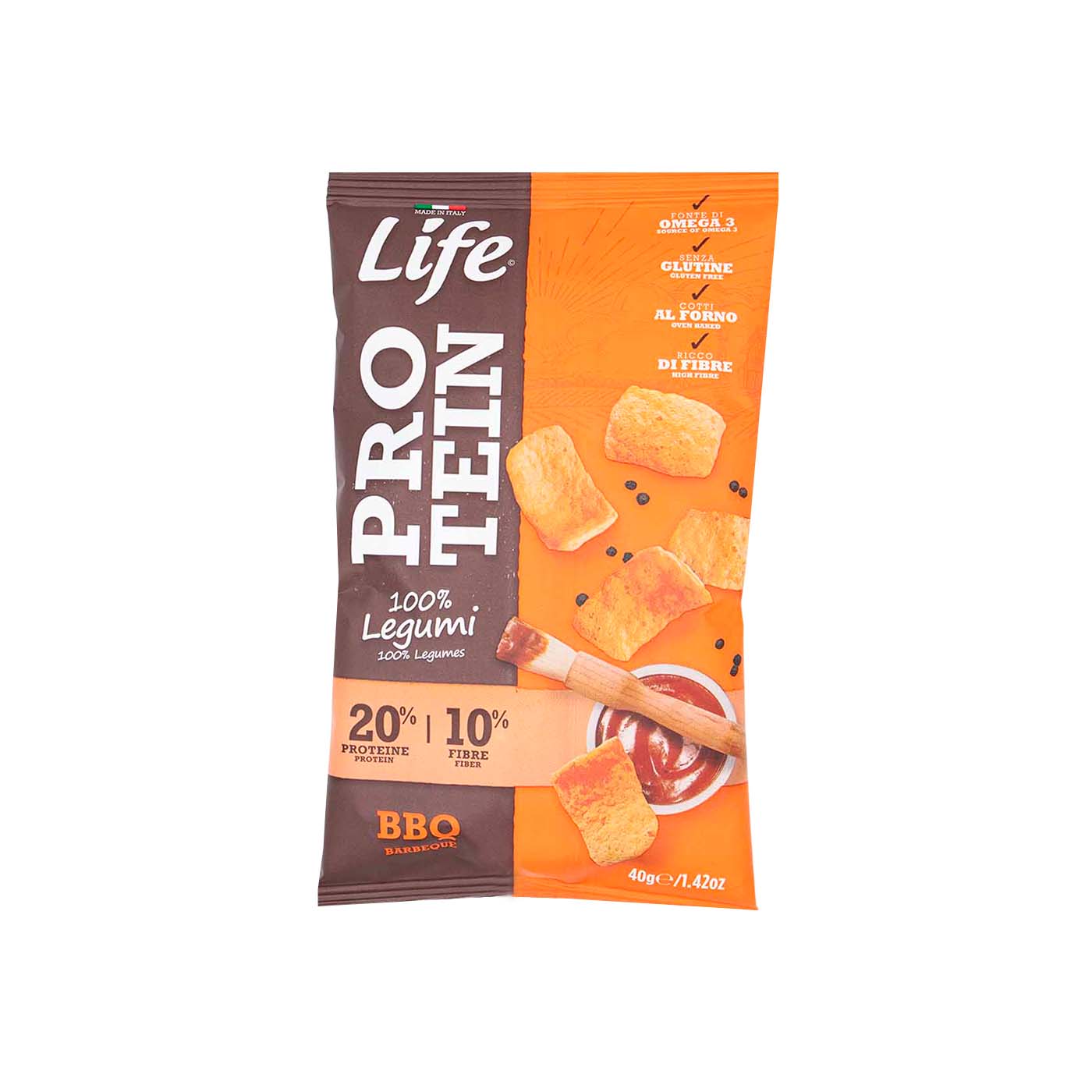 El Snack Proteico con Barbacoa de Life Snack es una combinación equilibrada de sabor y nutrición, formulado con una base de harinas de legumbres para quienes buscan una merienda rica en proteínas y libre de gluten.