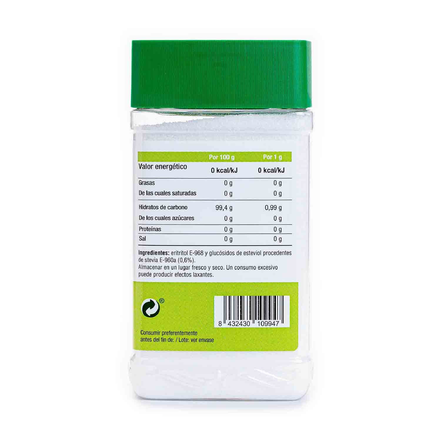 Stevia cristalizada en polvo de Terra Verda. Este fantástico producto se caracteriza por no mezclar dos ingredientes, sino que cada uno, en formato cristalizado, tiene una formulación exacta, de forma que el sabor es absolutamente uniforme. A diferencia de otras stevias del mercado, esta no mezcla ingredientes ni tiene añadida cantidades superiores de glicósidos de esteviol, que es lo que le dan al producto un retrogusto amargo o regaliz.