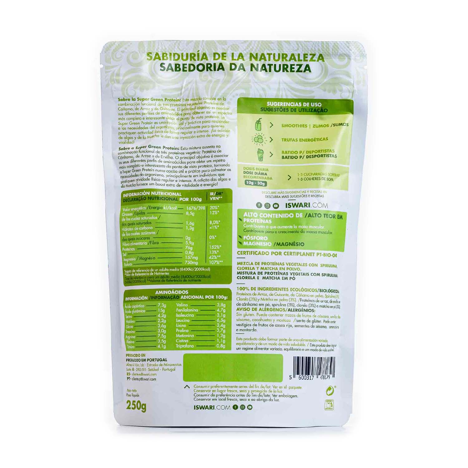Súper green proteína es el alimento perfecto para veganos. Perfecto para aquellos que quieran evitar el consumo de leche y sus derivados este producto es un complemento natural gracias a la combinación básica de tres proteínas vegetales: cáñamo, arroz y guisantes. Se puede preparar en pocos instantes, tiene un sabor suave y puedes añadirlo a tus bebidas favoritas, sopas, comidas o postres.