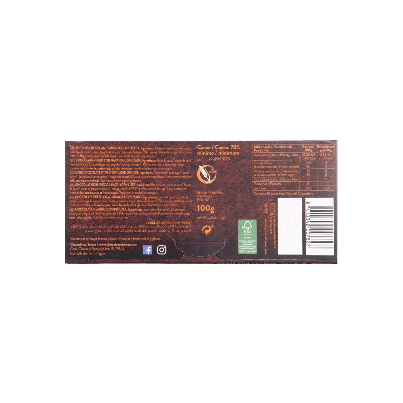 Tableta de Chocolate Negro con Naranja 70% Cacao 100g Torras