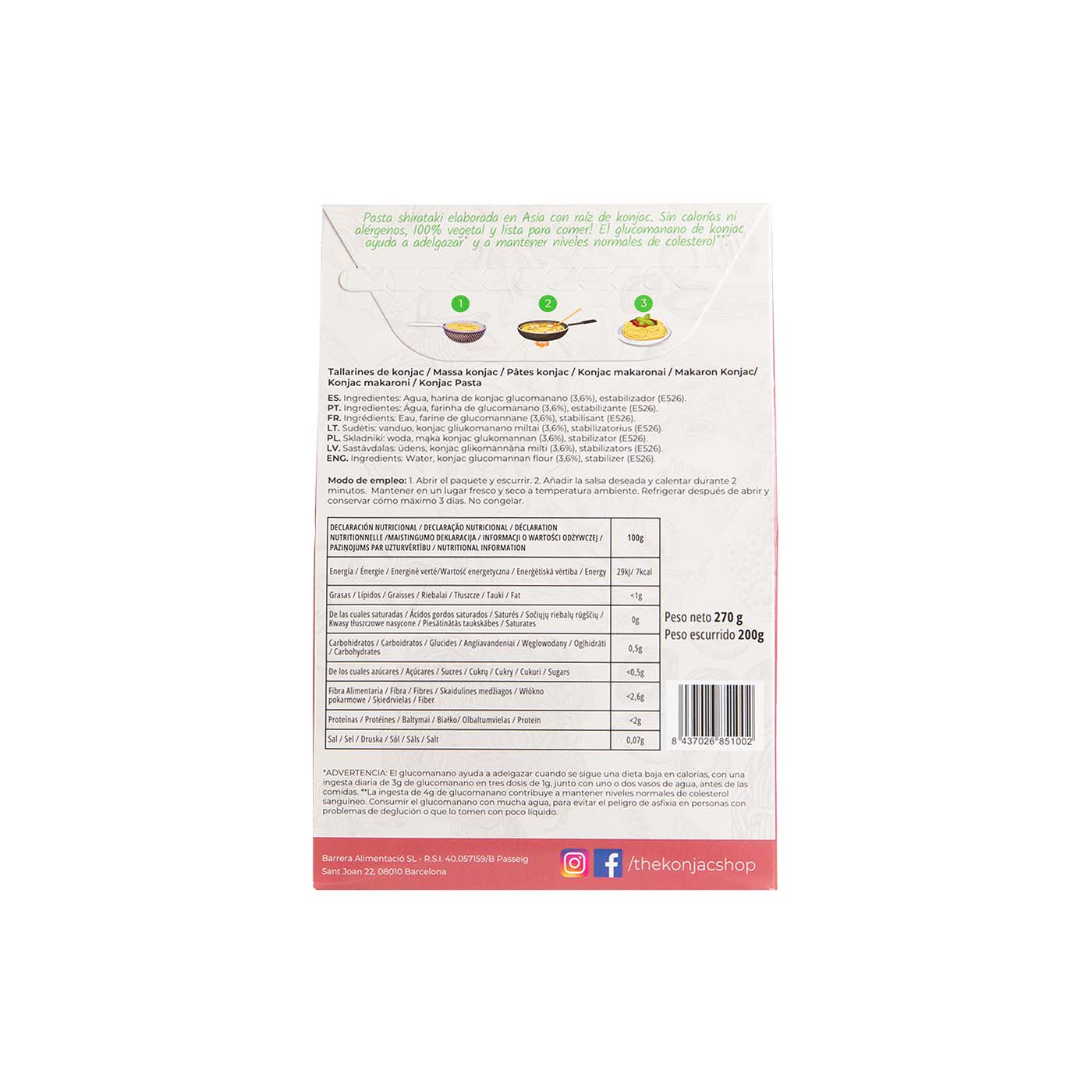 Los tallarines de konjac de The Konjac Shop con sólo 7kcal por ración, son la forma más sencilla de cocinar un plato bajo en calorías sin renunciar a la pasta. Los puedes mezclar con tu salsa favorita, añadirlo a una sopa o saltearlo con los vegetales, carne o pescado que más te gusten.