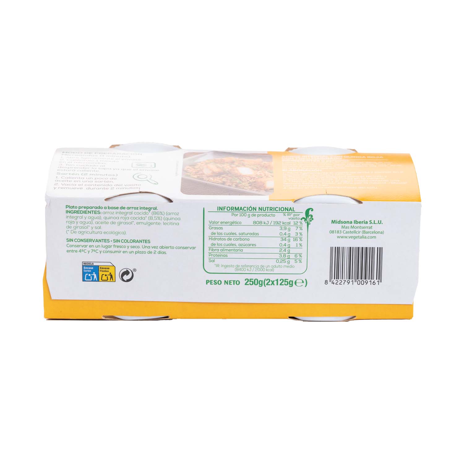 Vasito de arroz integral y quinoa roja 250g Vegetalia