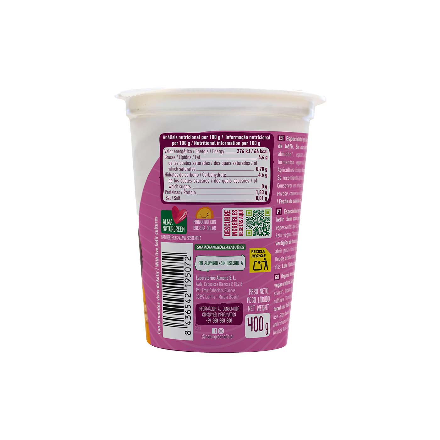 Agua, anacardo* (10%), almidón de tapioca*, espesante: agar-agar*, fermentos veganos de kéfir.